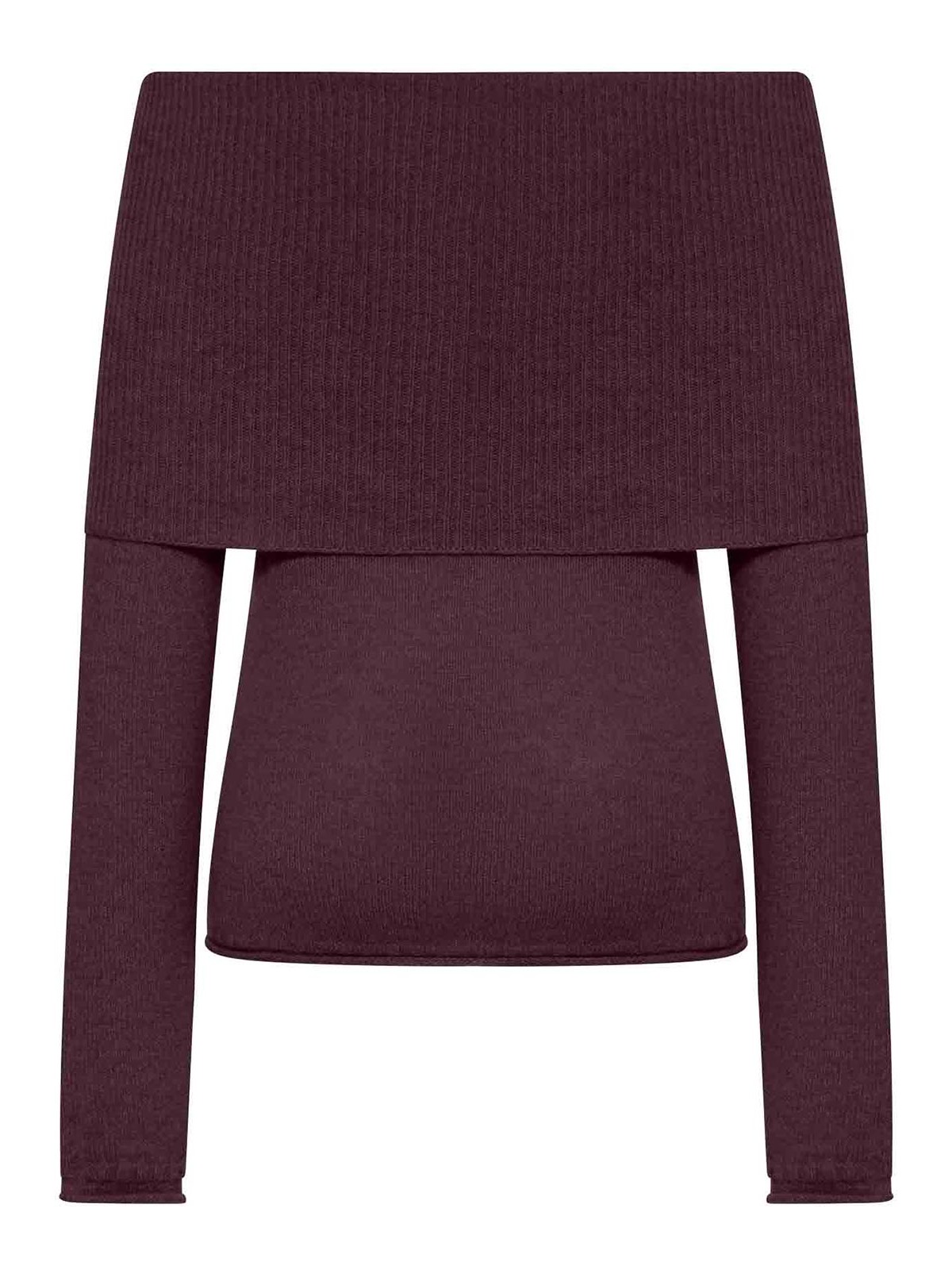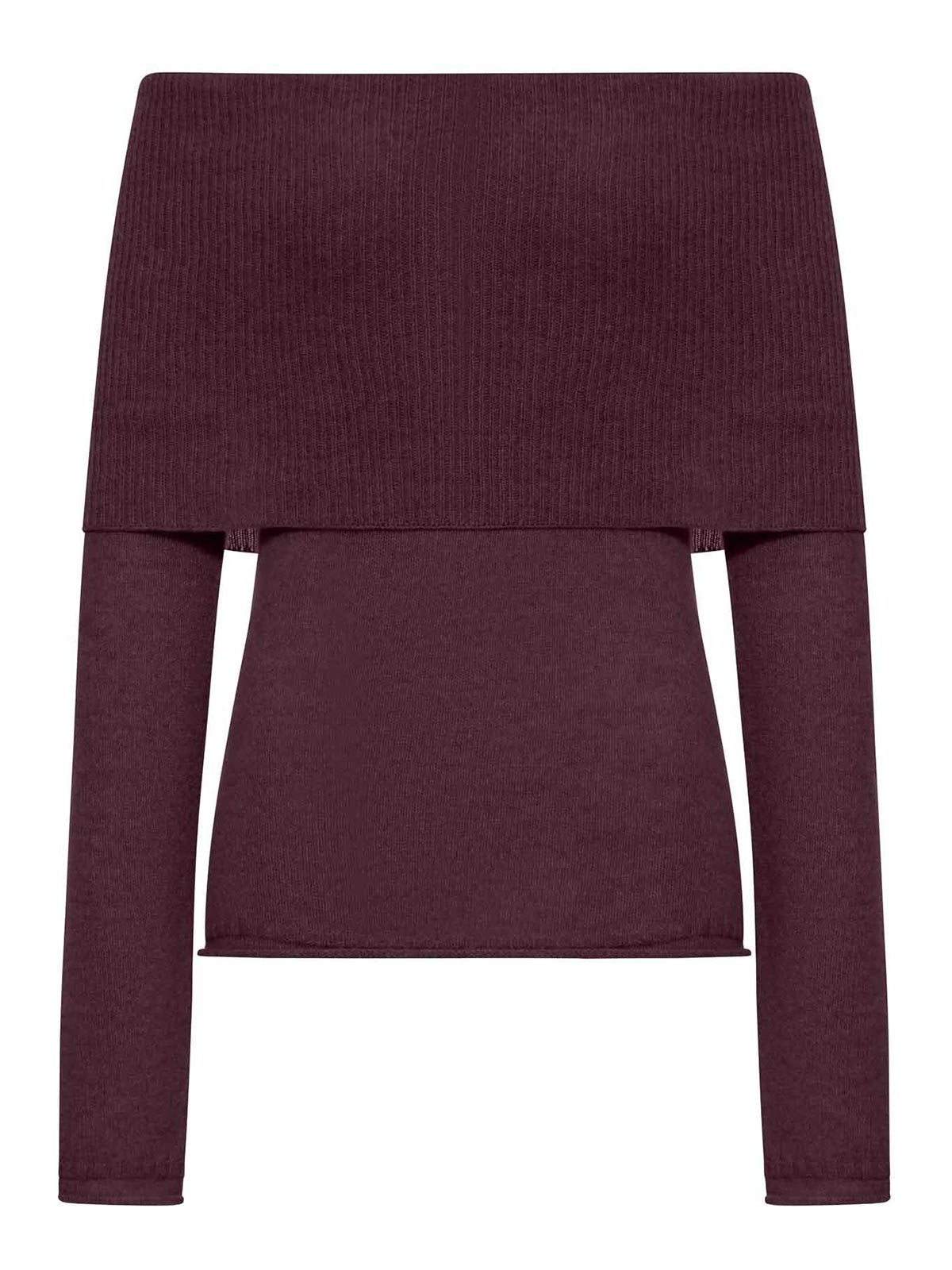 Boat neck sweater- ribbed- long sleeves- slim fit- color bordeaux