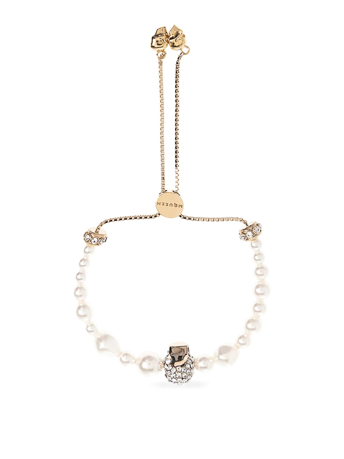 Gold-tone crystal embellishments adjustable chain logo charm