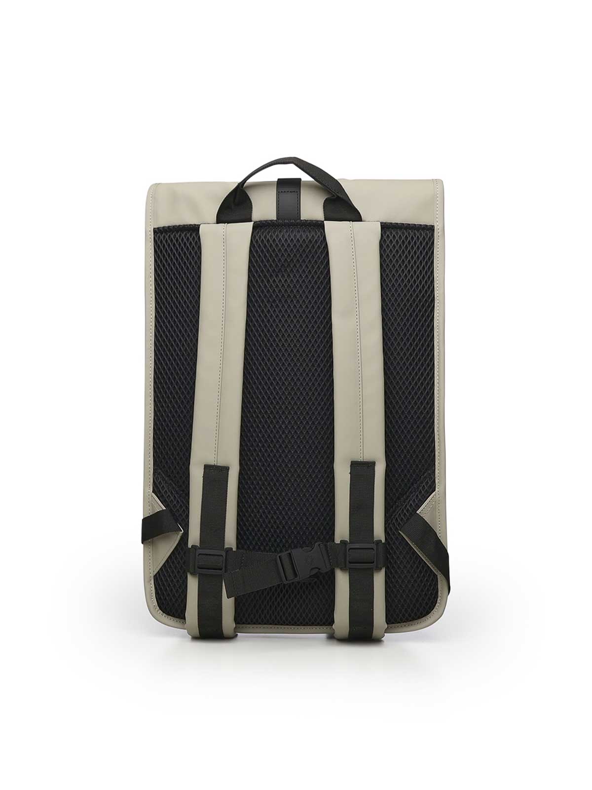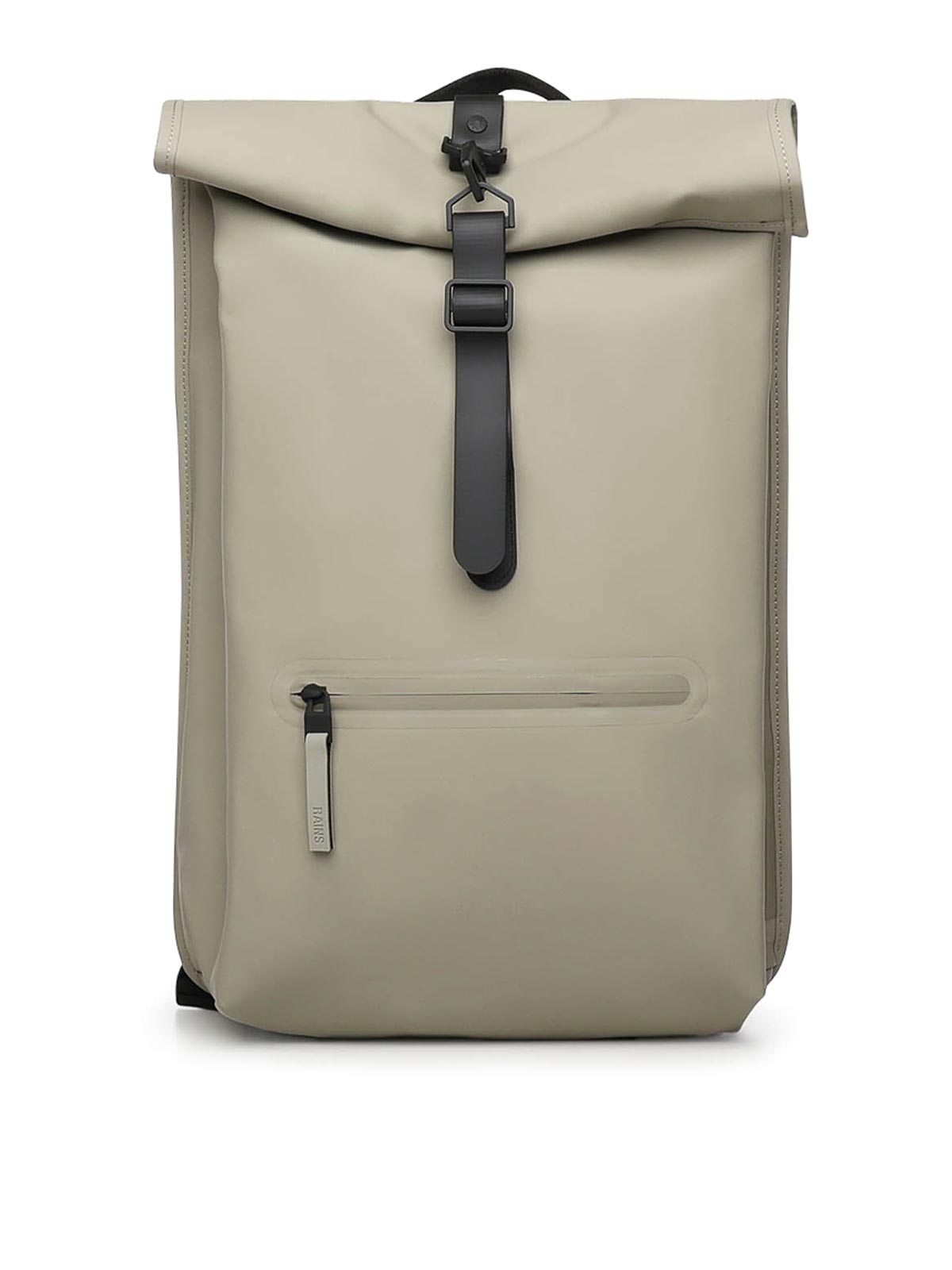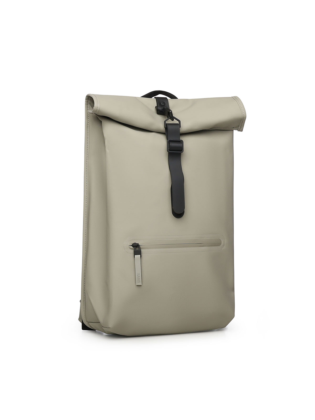 made of pu, rolltop opening with snap compression system and carabiner, adjustable shoulder straps, dimensions: 48 x 32 x 11 cm, designer color: drift