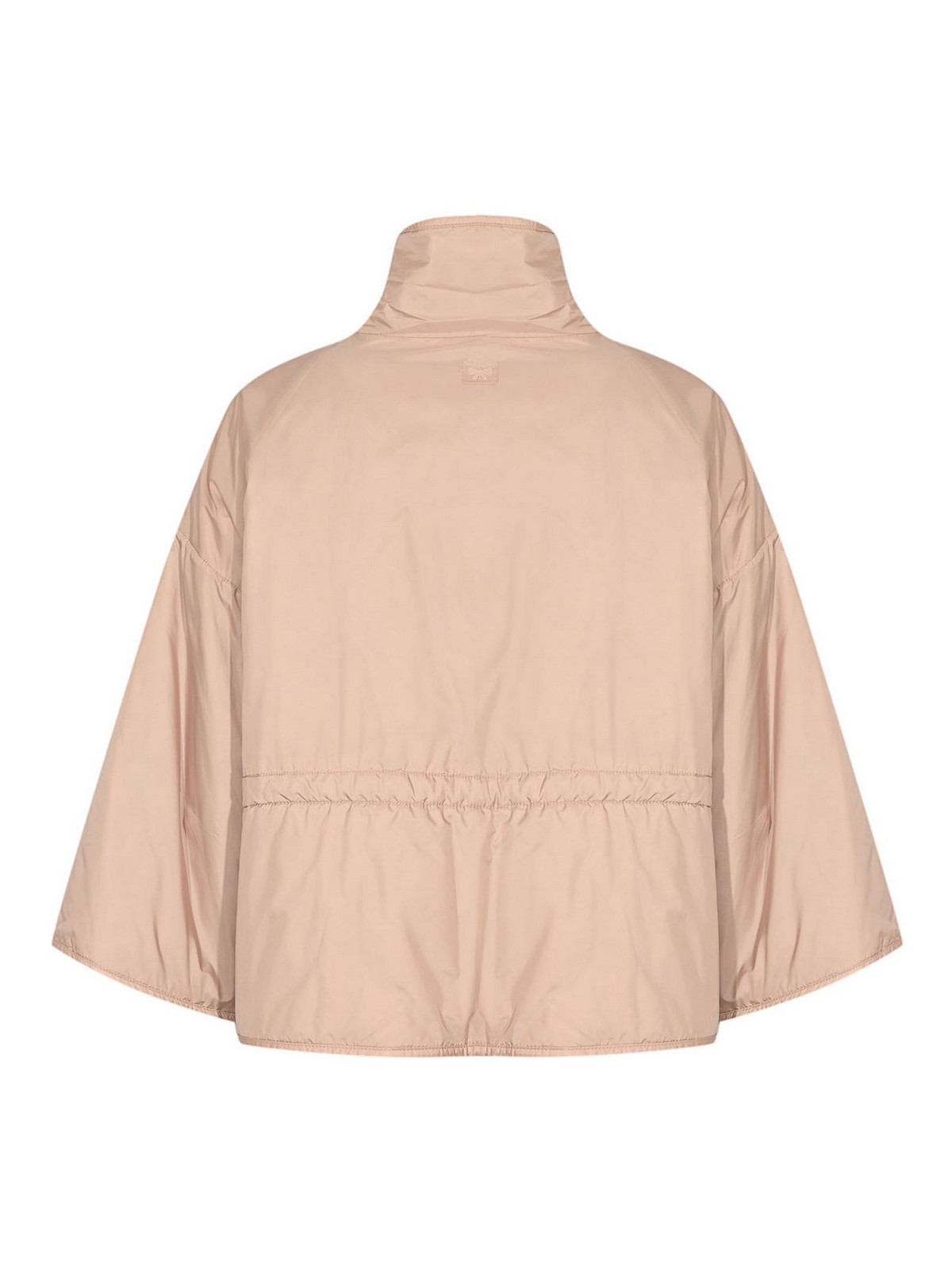 Reversible padded jacket waterproof quilted interior long sleeves shoulders drawstring waist button flap pockets with buttons welt pockets on the other side logo printed on the