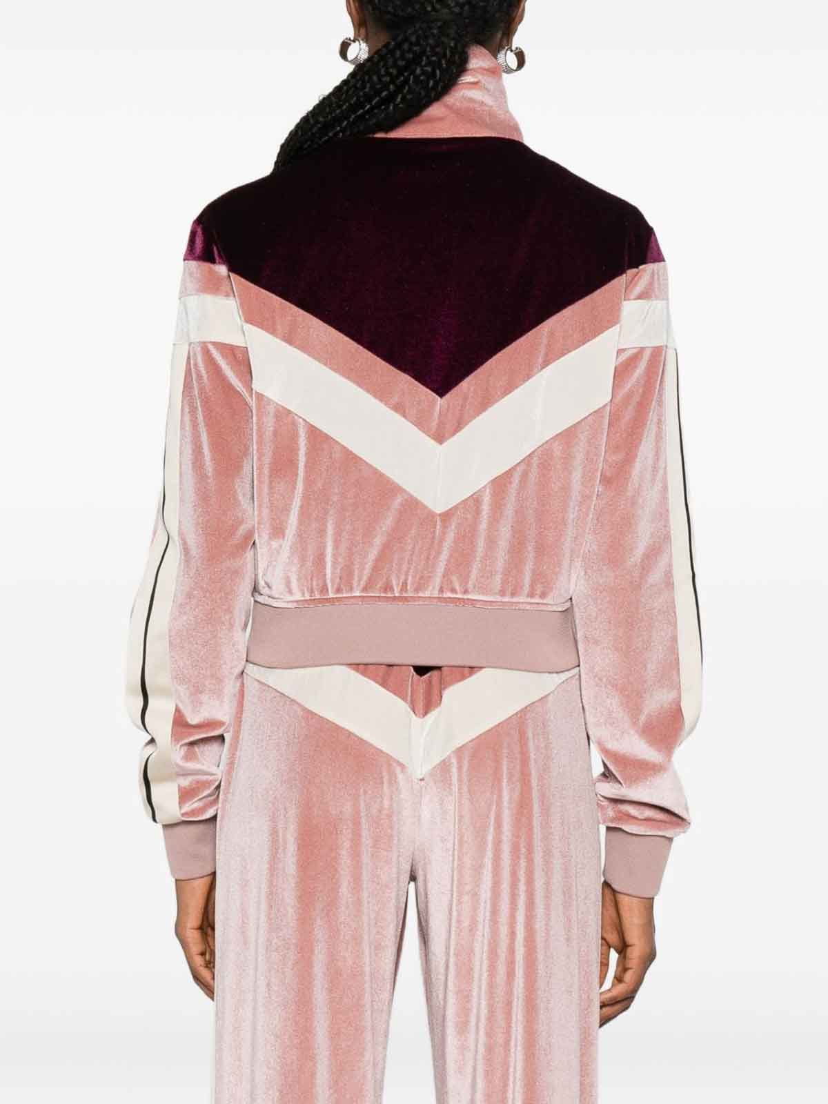 Rose pink track jacket from palm angels featuring a chevron pattern zip long sleeves ribbed hem and cuffs and side pockets a sporty yet chic piece that blends retro inspiration with the brands signature streetwear aesthetic