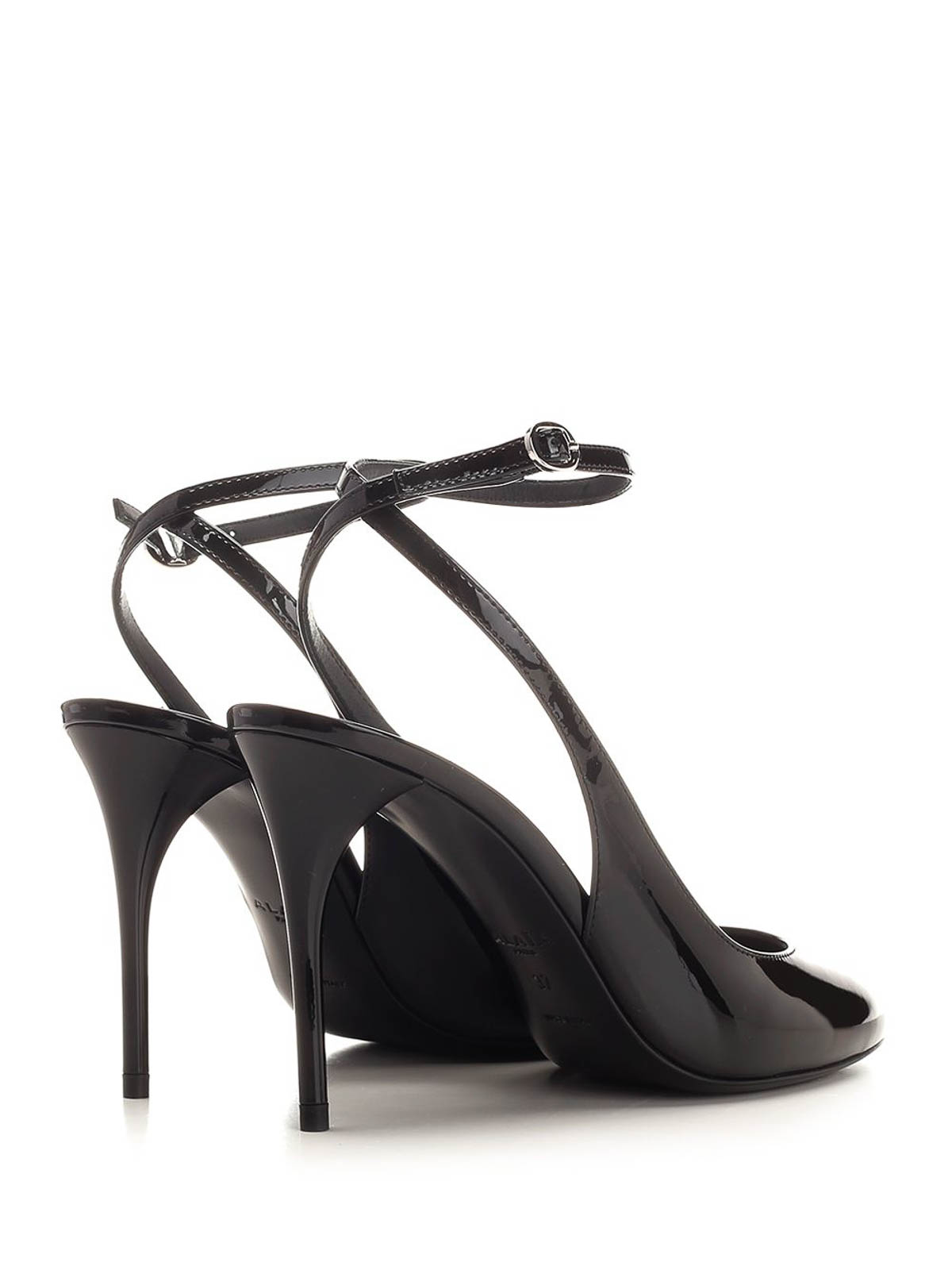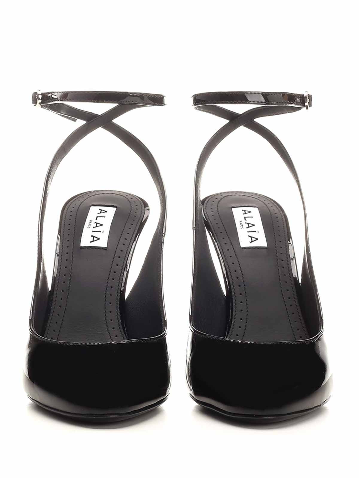Sling back in burgundy patent leather with rounded toe and high heel by alaia.