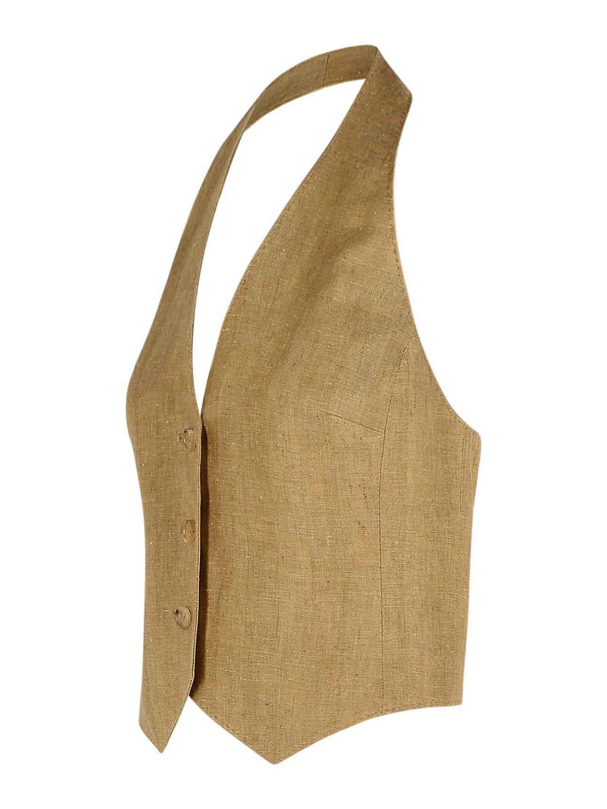 v' neckline, double-breasted button closure, tone-on-tone pleats