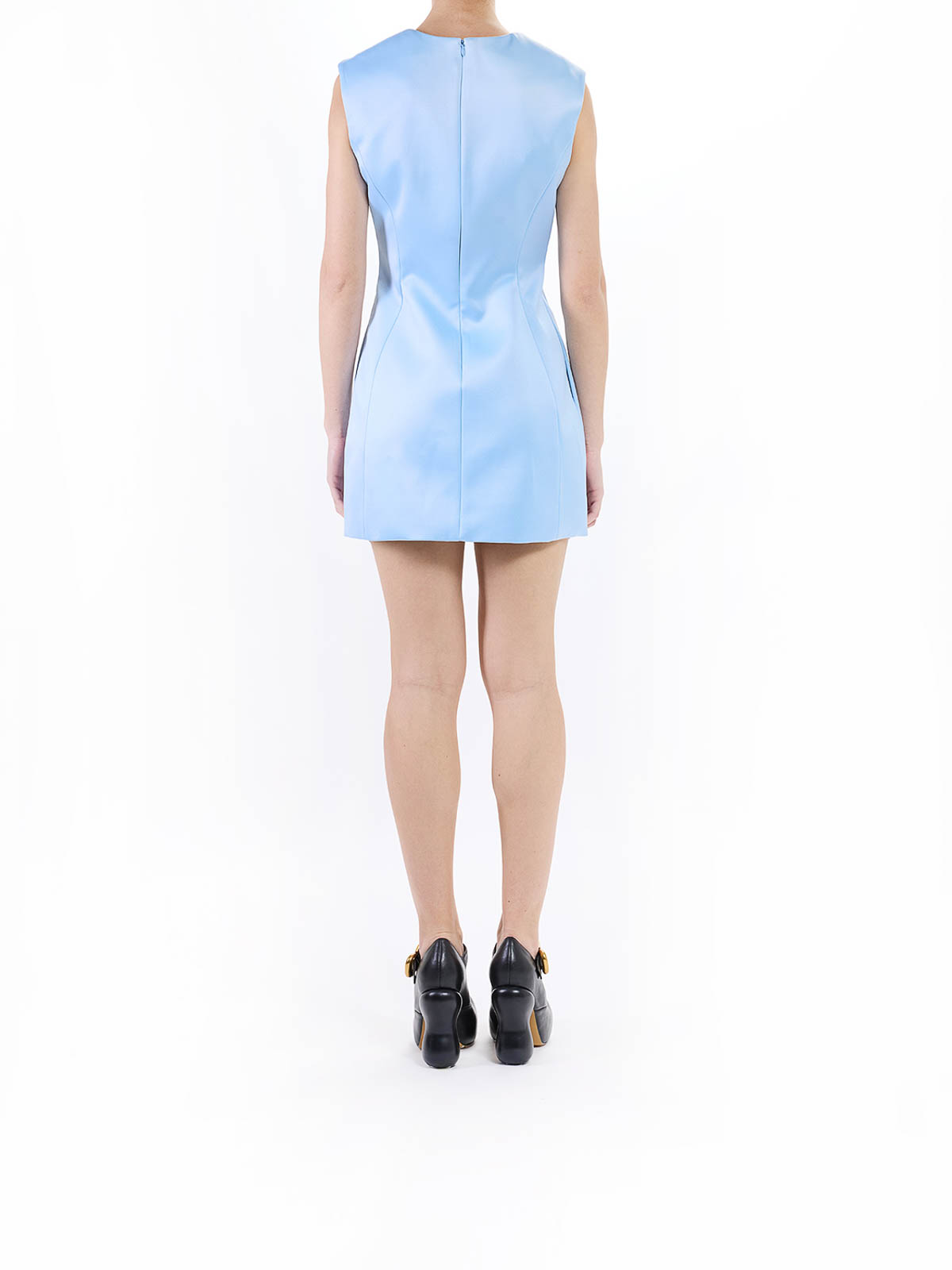 Seamed up dress in blue mini satin dress signed by Marc Jacobs defined by a silhouette carved with structured bustier and shaped waist that enhances the figure presents a high round neckline and two pockets integrated in the side seams mini round clothes round neckline other silhouts built torso with sewn Sagomato Sagomato rear side pockets with hidden blue color.