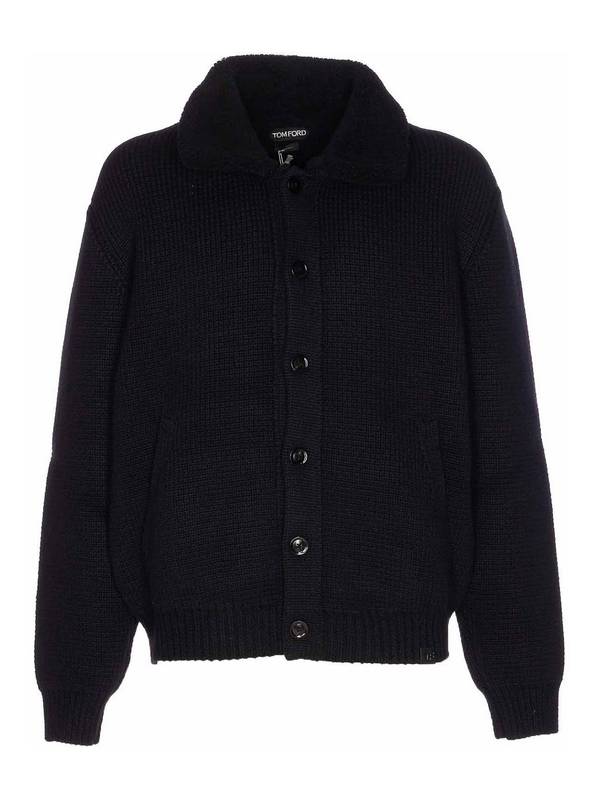Tom ford black knitted cardigan buttons regular collar on sleeves lateral pockets on the back
