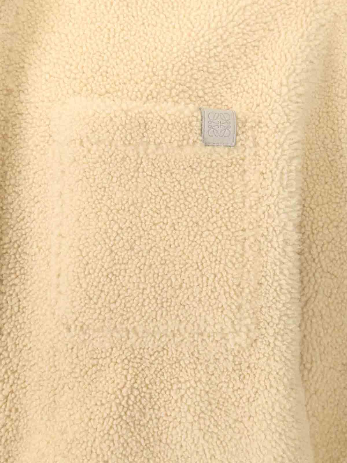 Midweight curly shirt jacket concealed zip and snap button at snap button cuffs patch chest pocket vertical welt pockets
