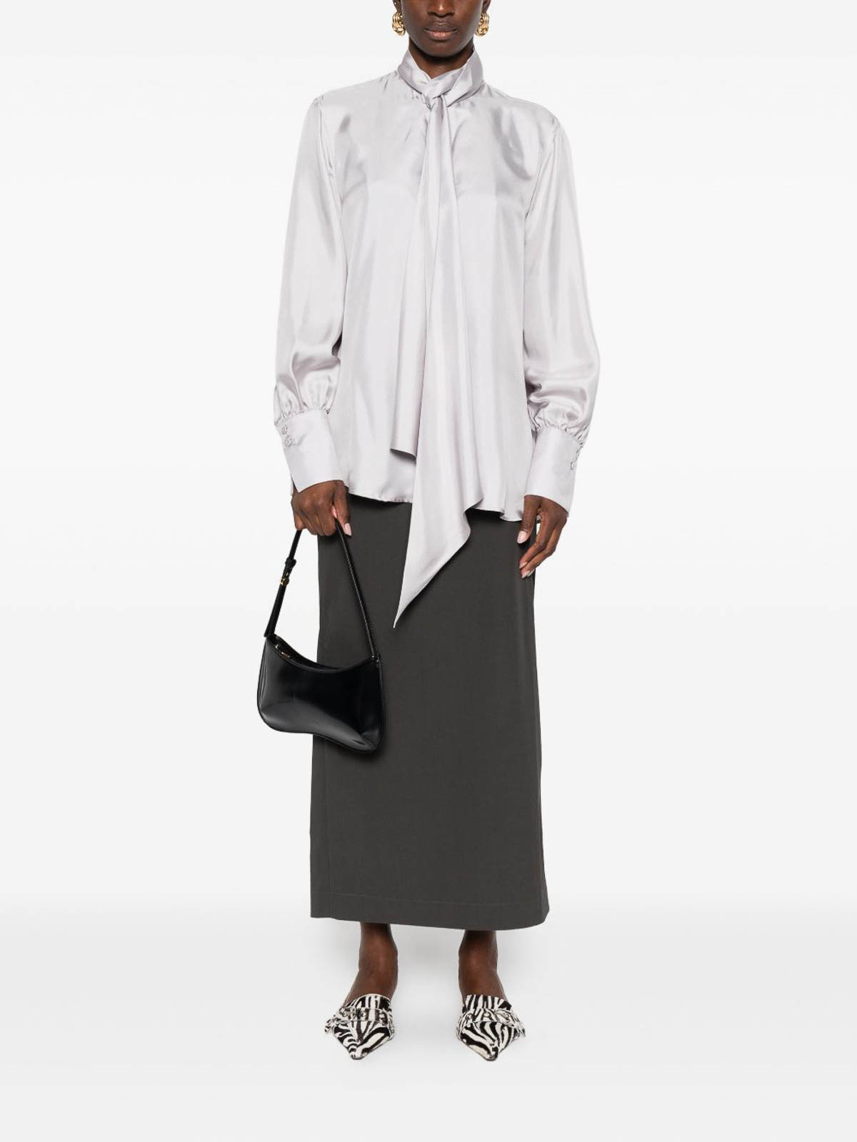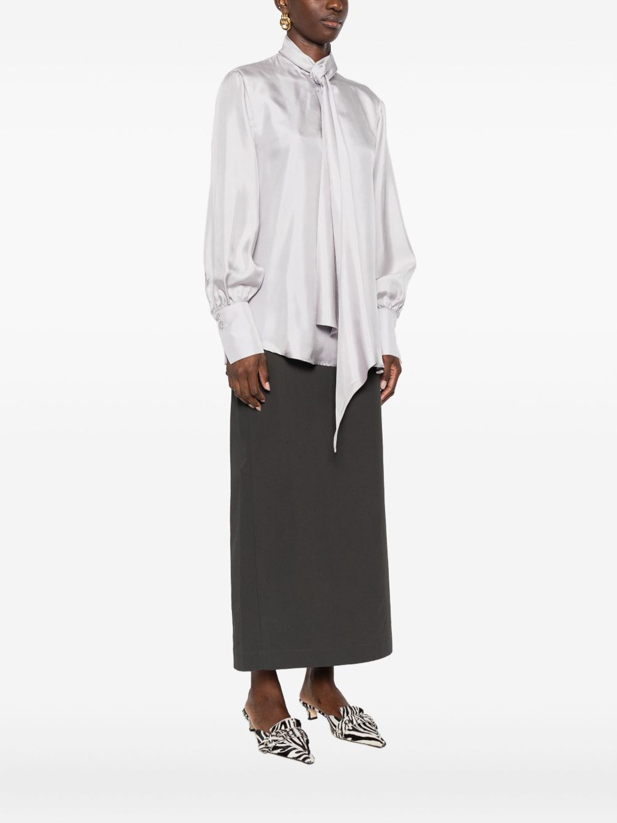 Light grey long sleeves pointed collar