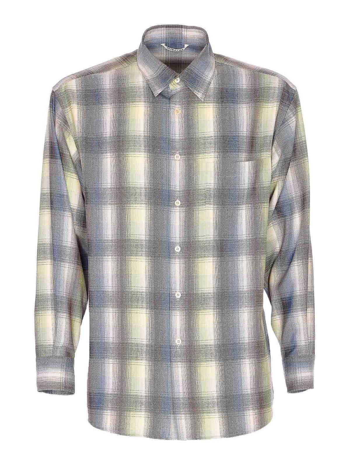 Auralee green super shirt with buttons closure, regular collar, long sleeves, button on cuffs, check motif