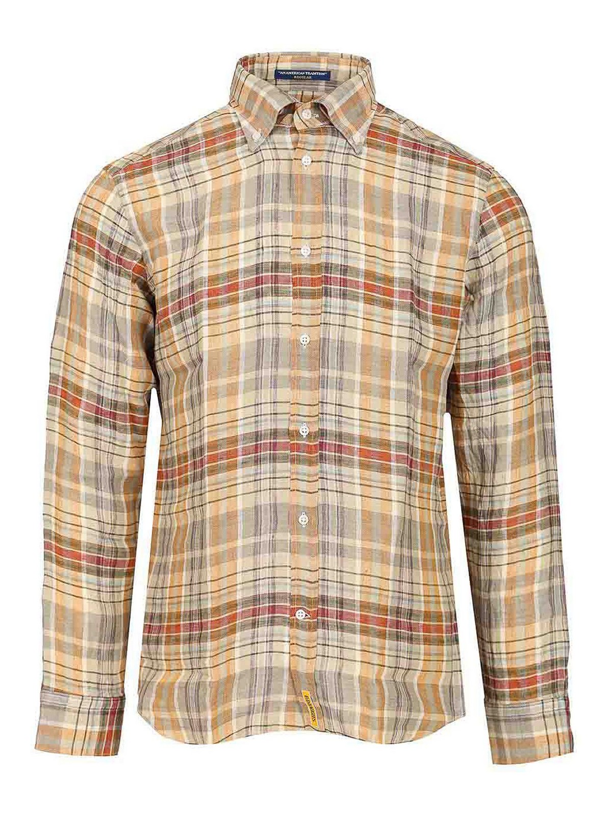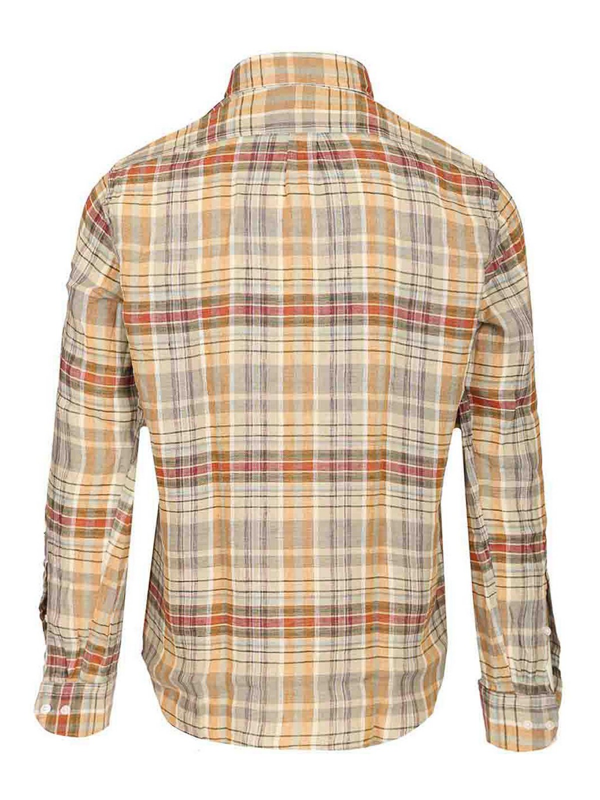 B d baggies bradford linen shirt, with structured button-down collar, front button fastening and small label sewn onto the hem