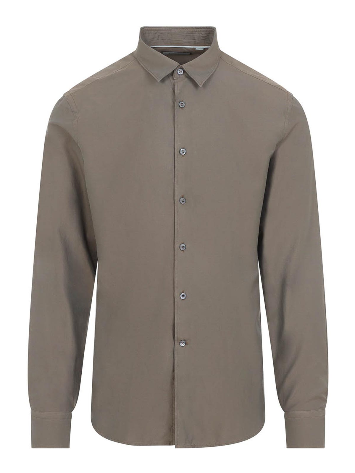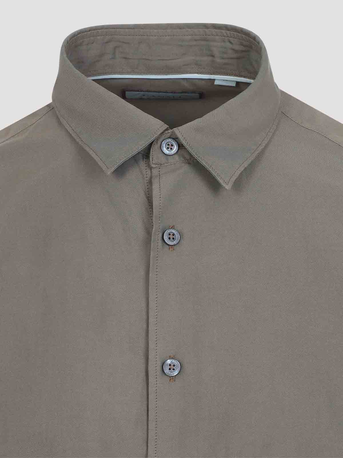 Canali brown cotton shirt. crafted in cotton and silk blend. pointed collar, front buttoned fastening, long sleeves, buttoned cuffs, straight hem.