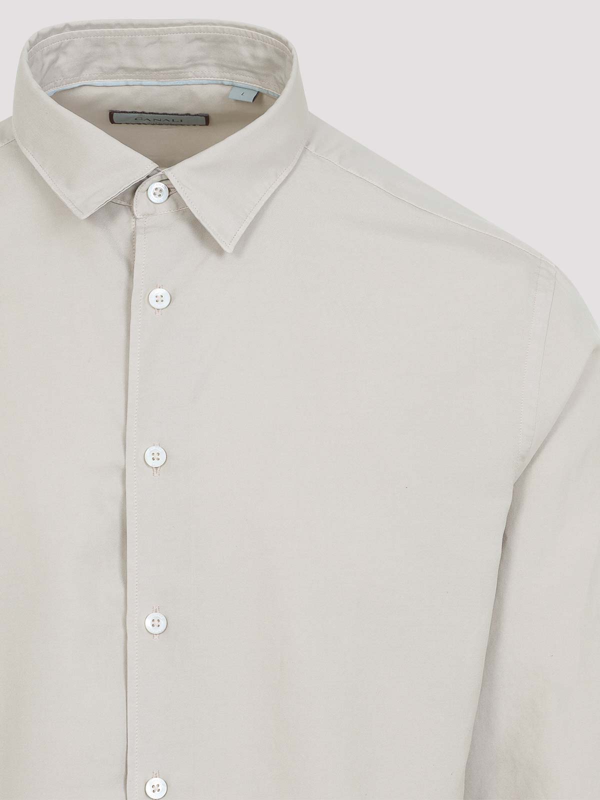 Canali beige cotton shirt. crafted in cotton and silk blend. pointed collar, front buttoned fastening, long sleeves, buttoned cuffs, straight hem.