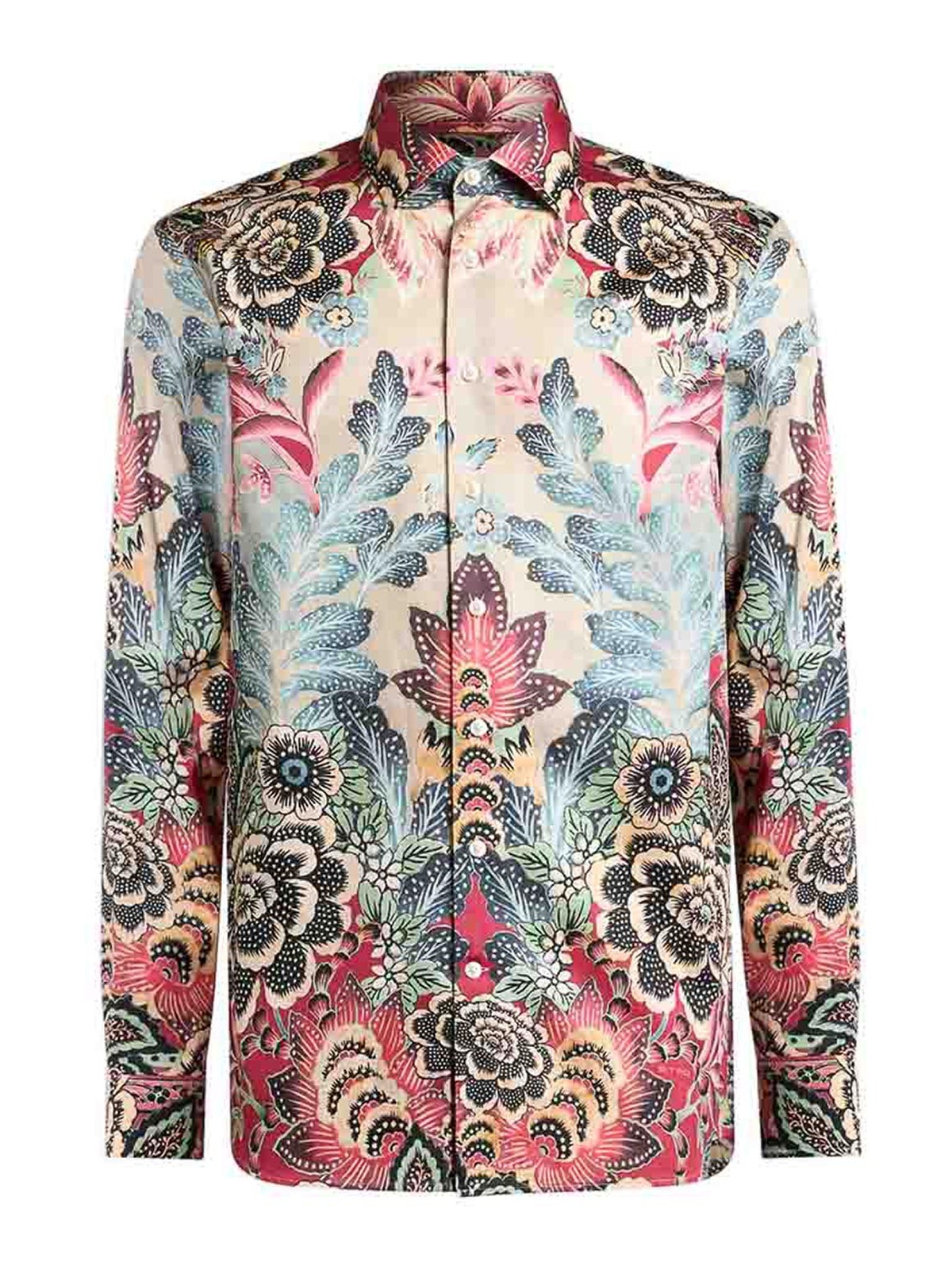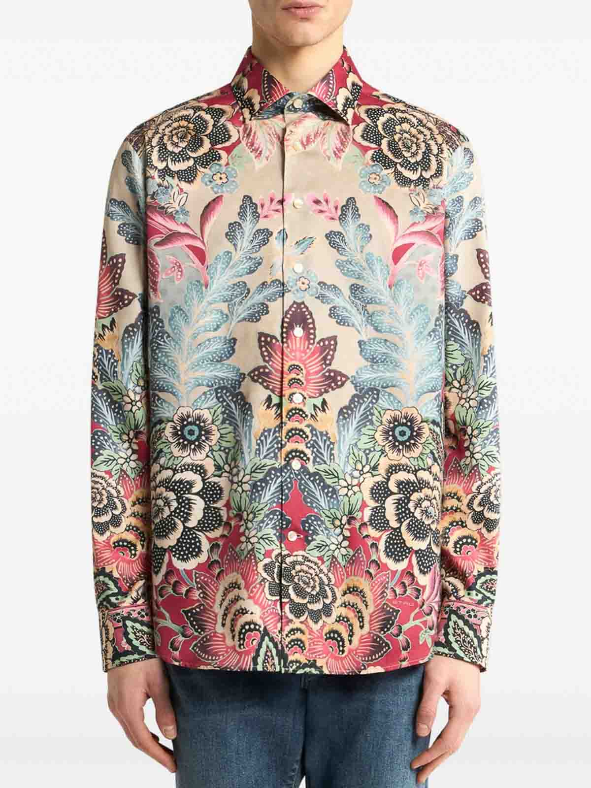 Beige floral print foliage print button long sleeves cuffed sleeves