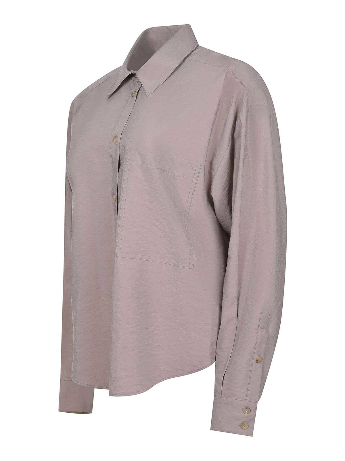 Alysi shirt made of mud-colored silk crepe. classic collar. button closure at the front. chest pocket. long sleeves. buttoned cuffs. 93% silk 17% polyamide. made in italy.