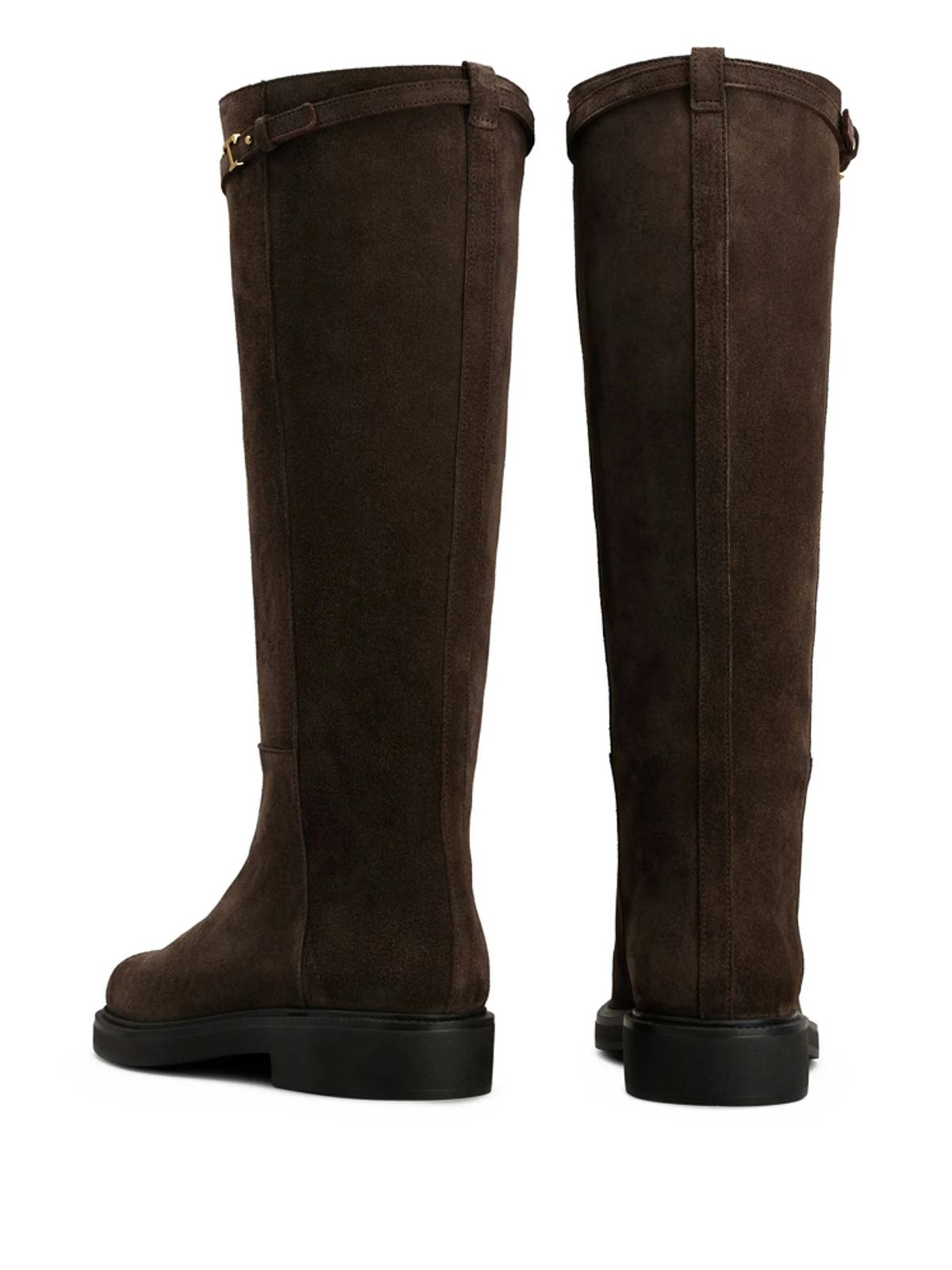 Chocolate brown pull, on style round toe flat logo, buckle