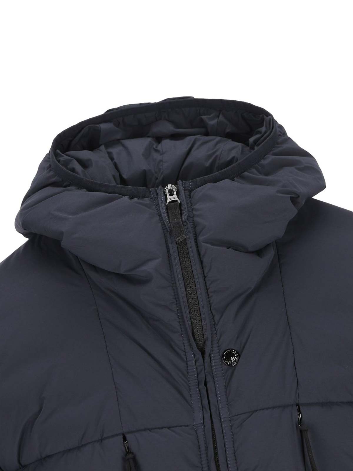 Stone island navy blue hooded short jacket with logo patch
