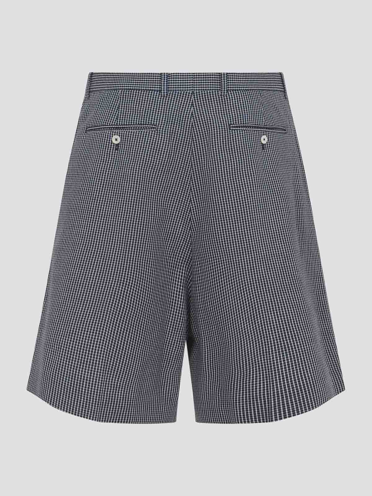 Givenchy blue cotton shorts. pure cotton shorts, front concealing zipped and hooked fastening, belt loops, side pockets, back slit buttoned pockets, front pleated details, straight hem. white and blue checked pattern all-over.