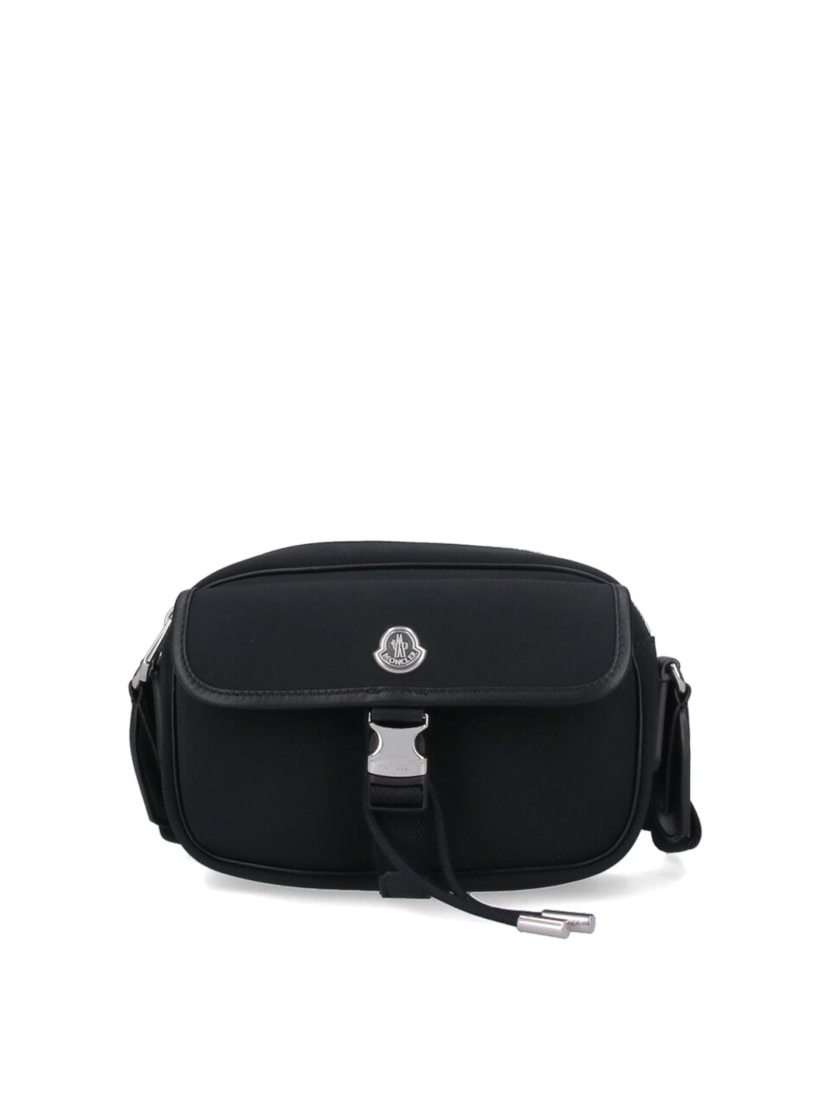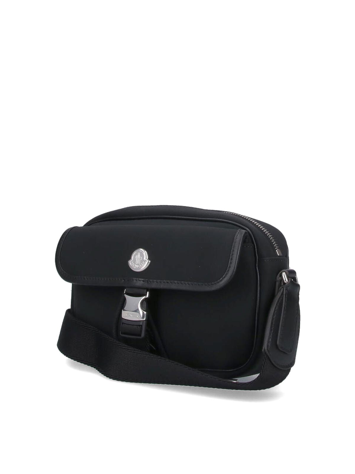 New Trick bag moncler in black adjustable and removable zip finishes a pocket Patta pitto bitting buckle in front of the silver metal logo in front of a main zip pocket a main compartment