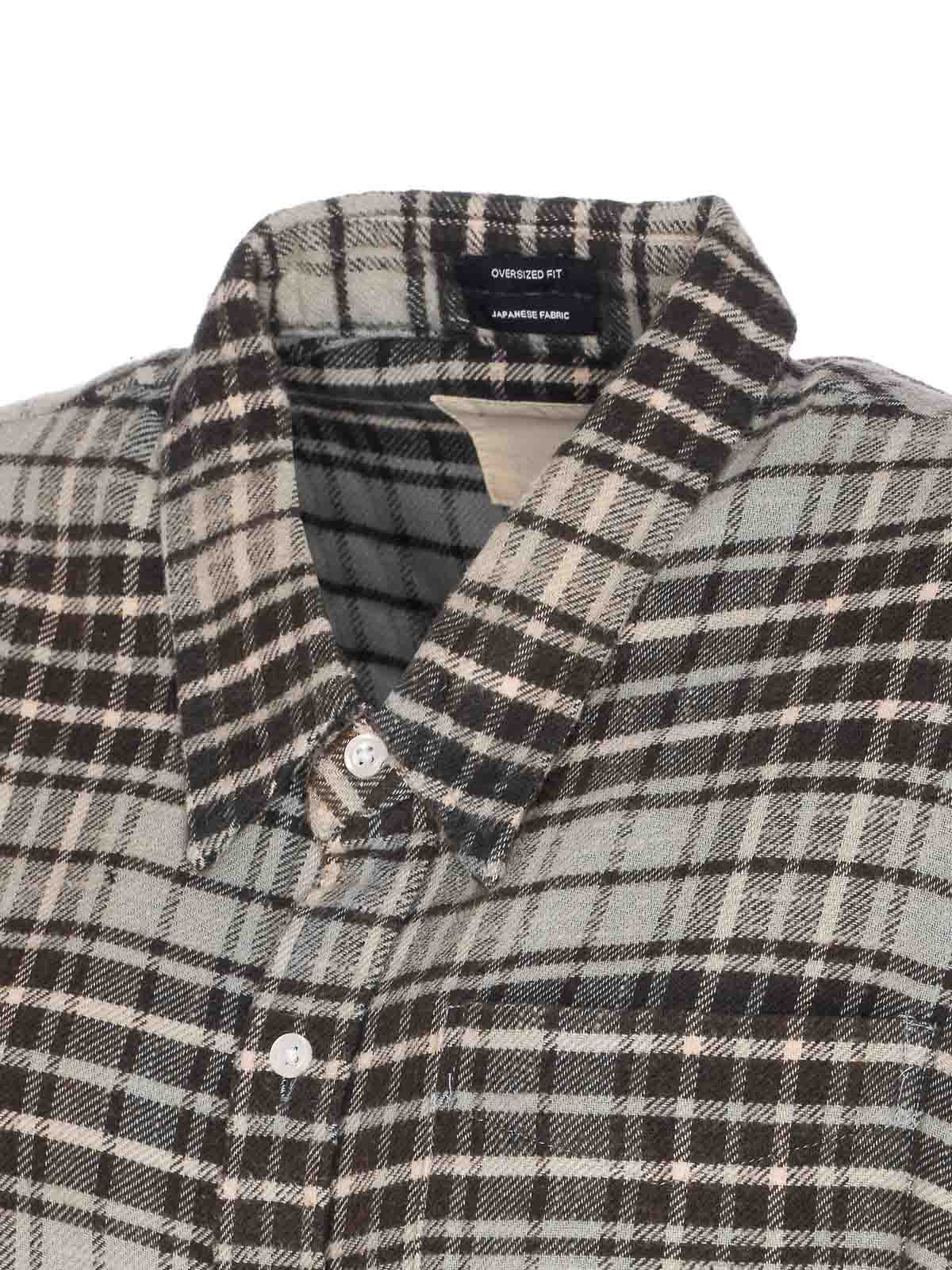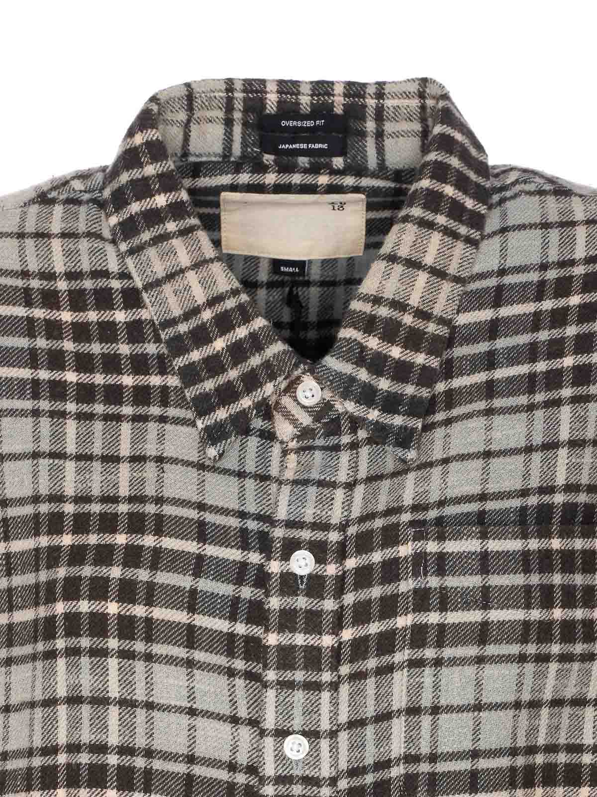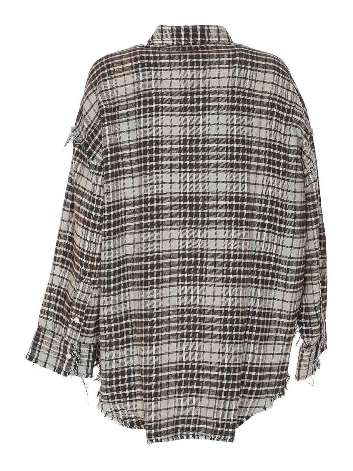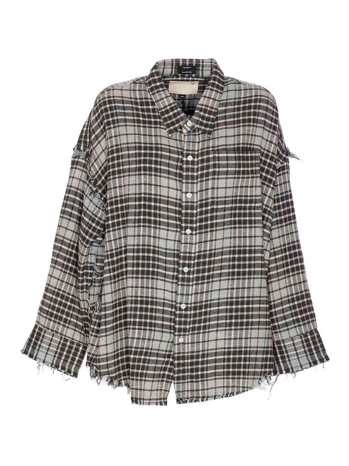 R13 blue and grey shredded shirt, crewneck, buttons closure, check