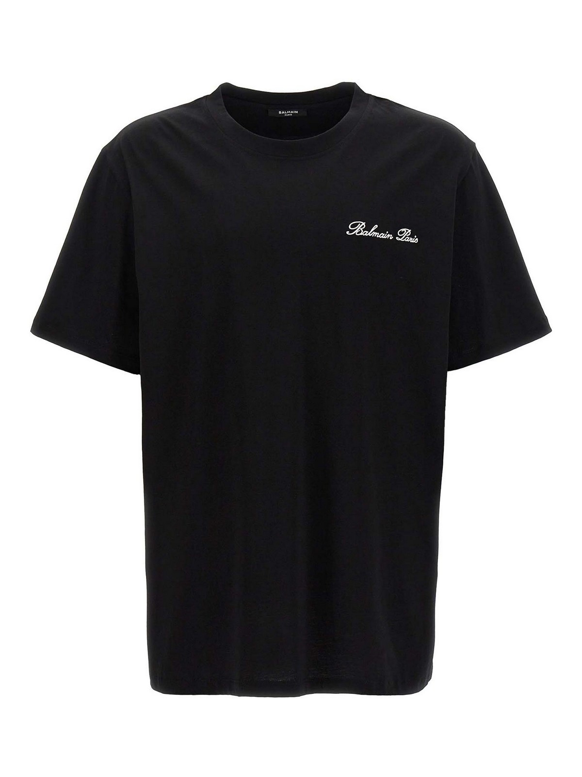 signature' cotton, crewneck t-shirt with embossed front and back logo embroidery, short sleeves.