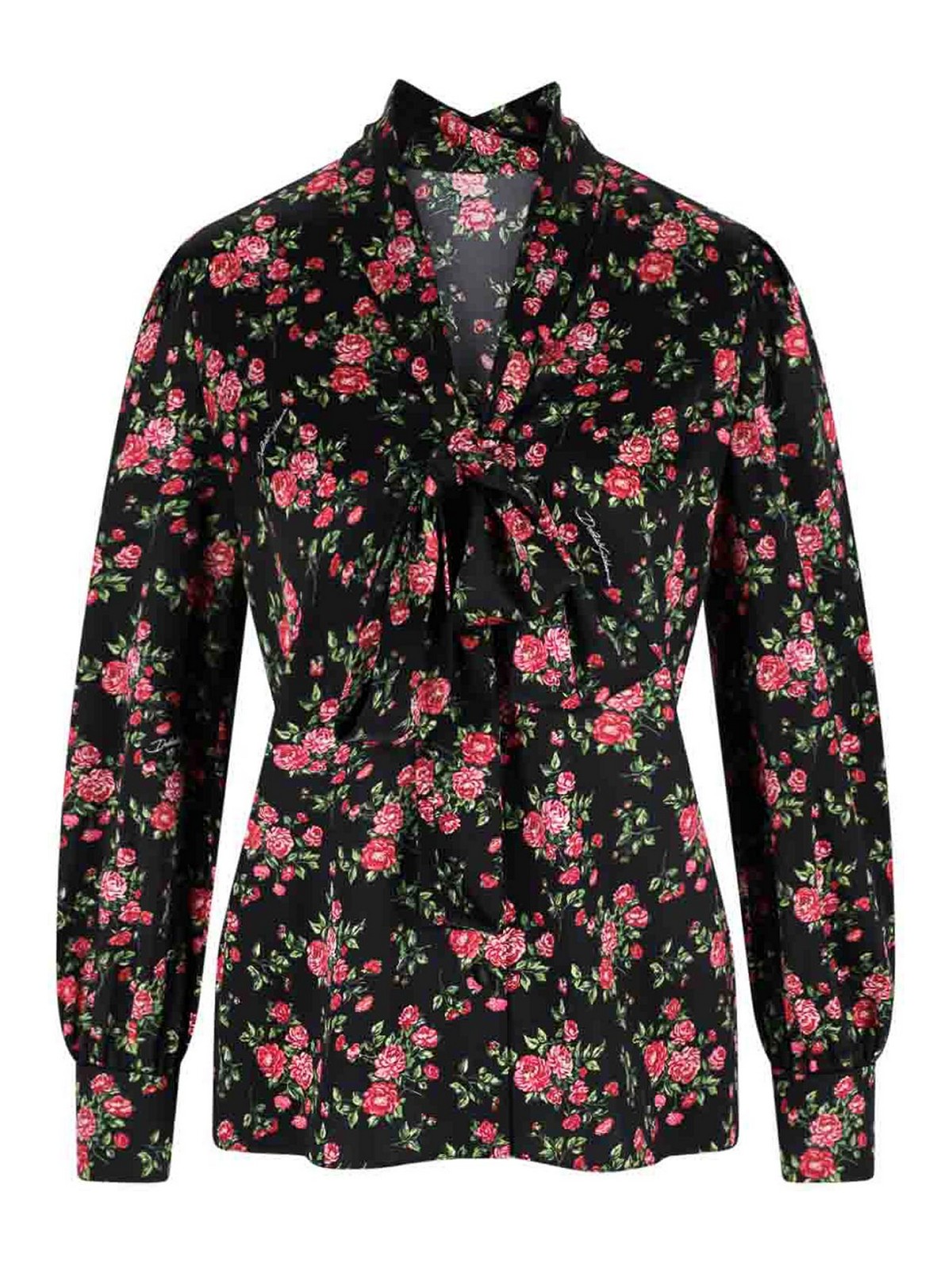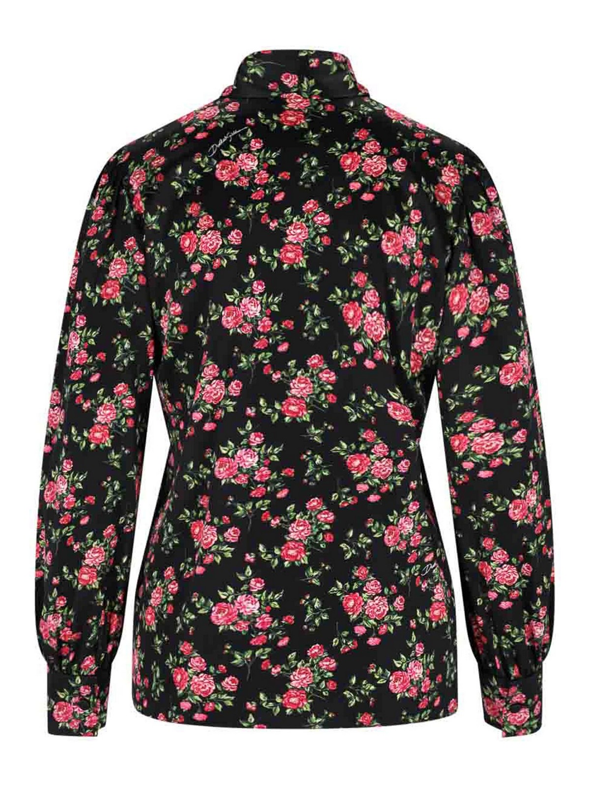 Dolce & gabbana silk shirt, multicolour, floral print, v-neck, front bow detail, long sleeves, buttoned cuffs, straight hem.