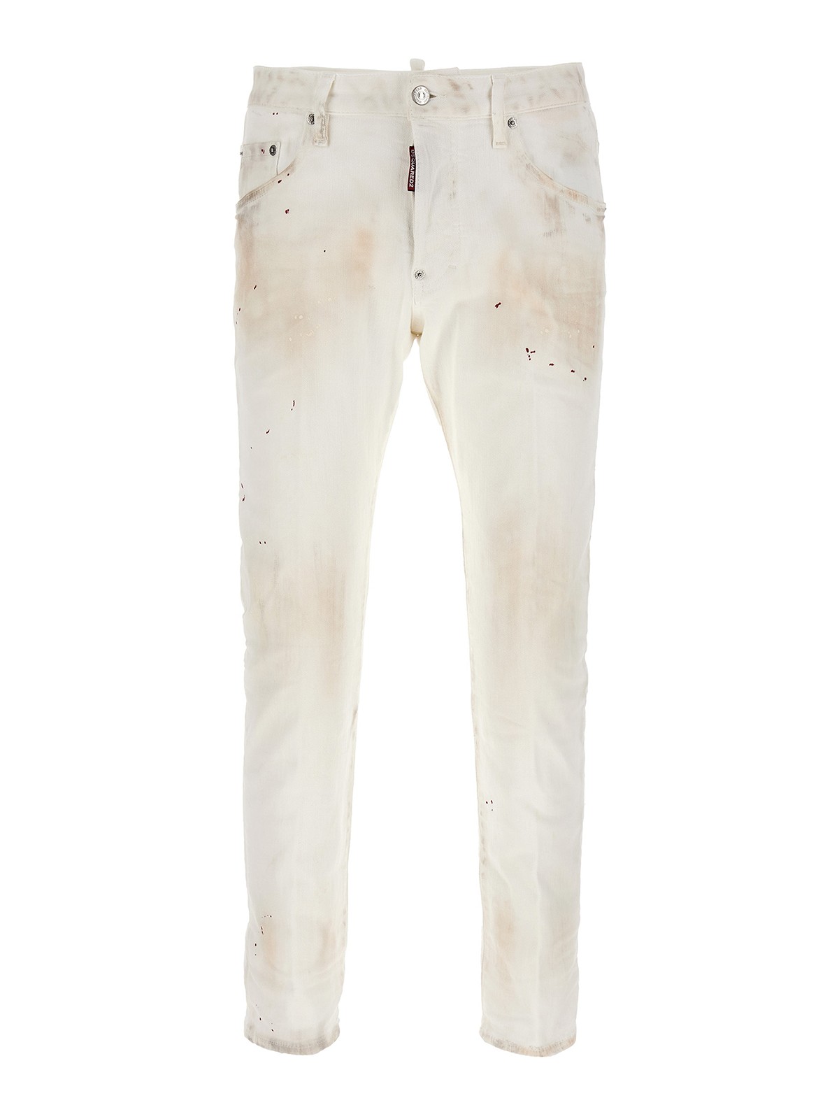 Skater jeans in cotton denim with stain and dirty-effect details button closure five pockets and leather logo label