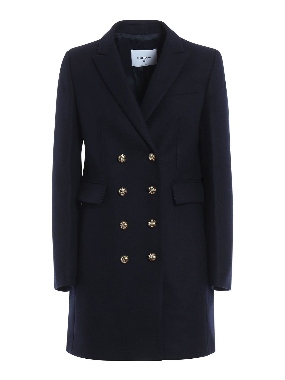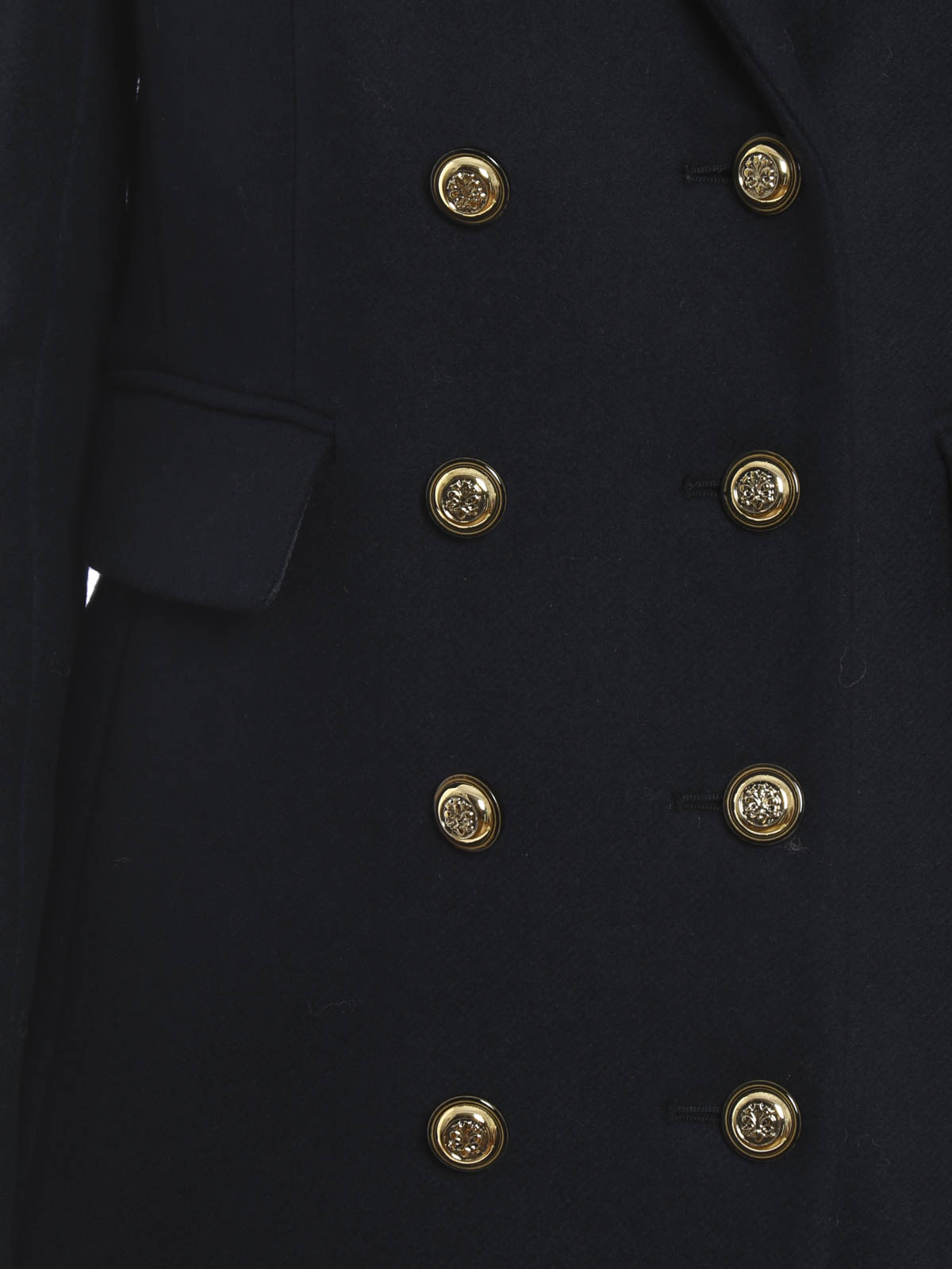 Wool and cashmere double-breasted short coat detailed with peak lapels, one chest pocket and two front flap pockets, gold-tone double button fastening, tonal lining and slim fit.