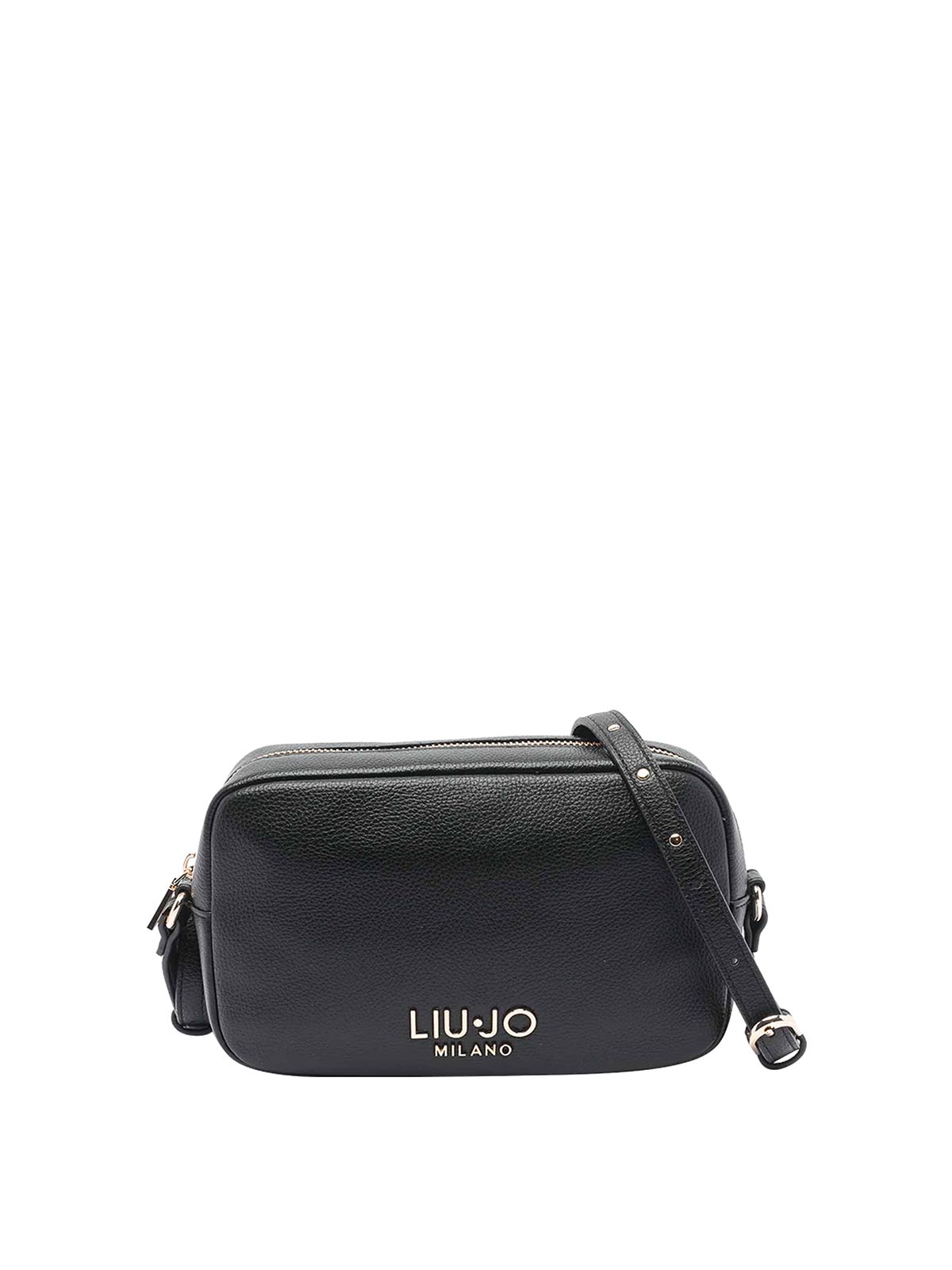 Liu jo black small logo camera bag, zip closure, inner open pocket, adapable strap, frontal logo