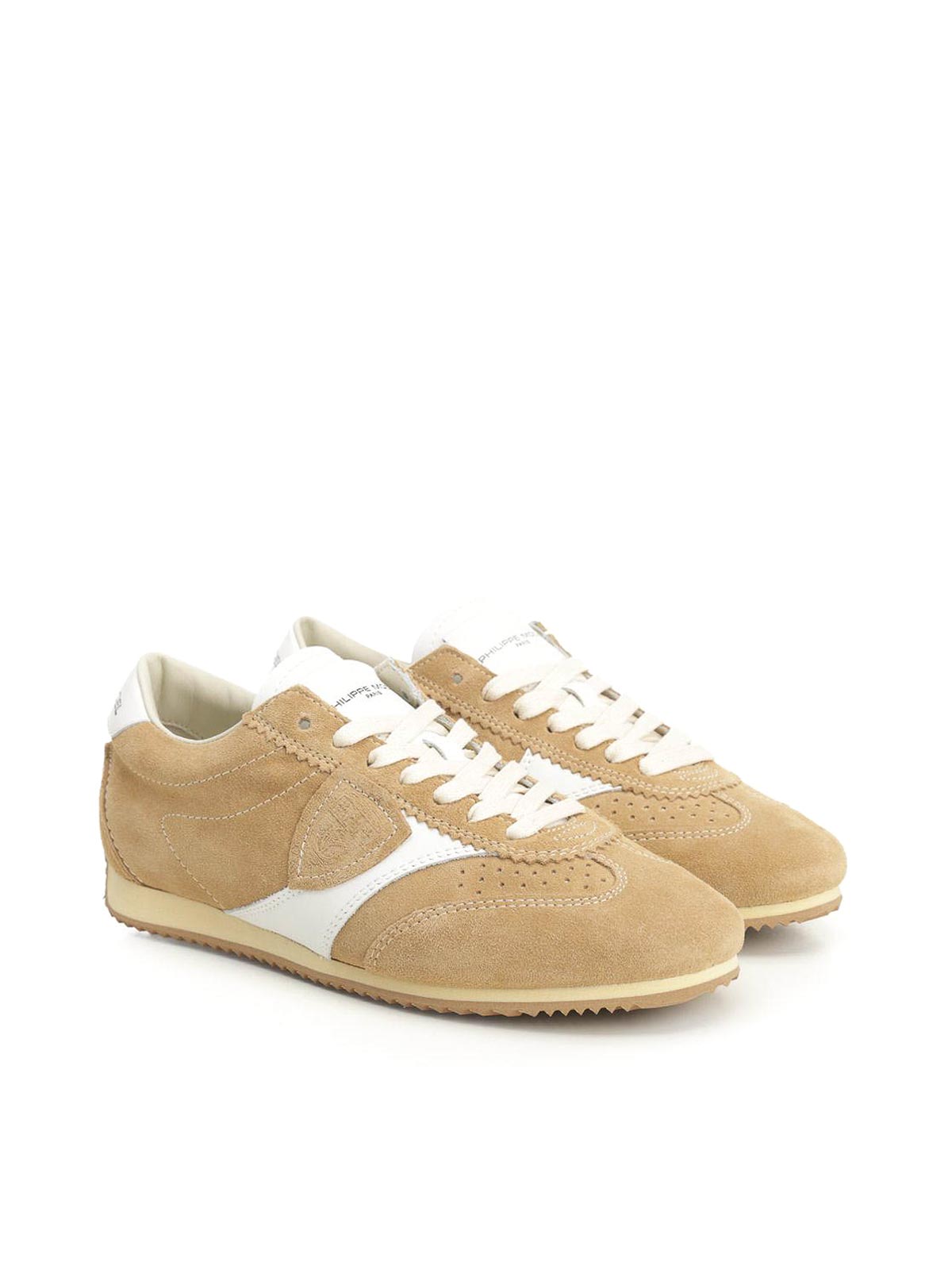 Philippe model planche suede sneaker with leather details, rounded shape,contrasting detail on the heel, and brand name on the heel.