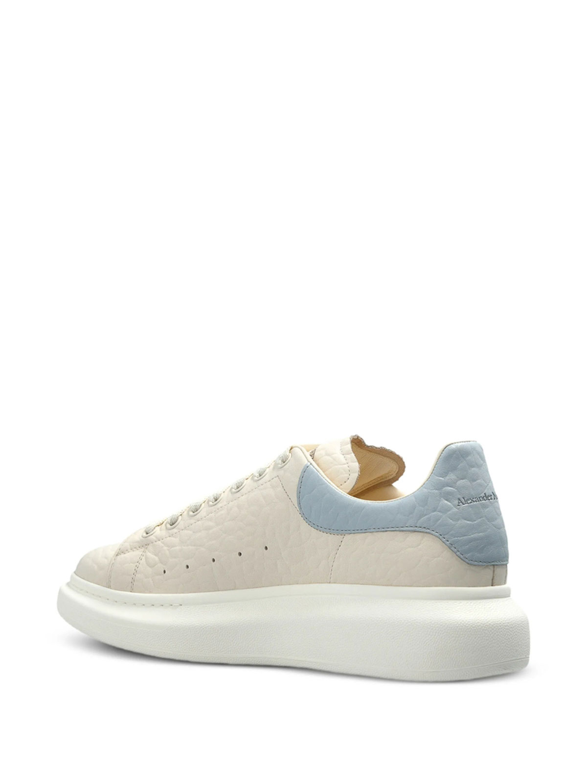 Bone white textured finish heel tab lace-up fastening round toe platform sole to lessen the environmental impact and to reduce cotton consumption, alexander mcqueen will no longer be providing a dust bag with its sneakers.