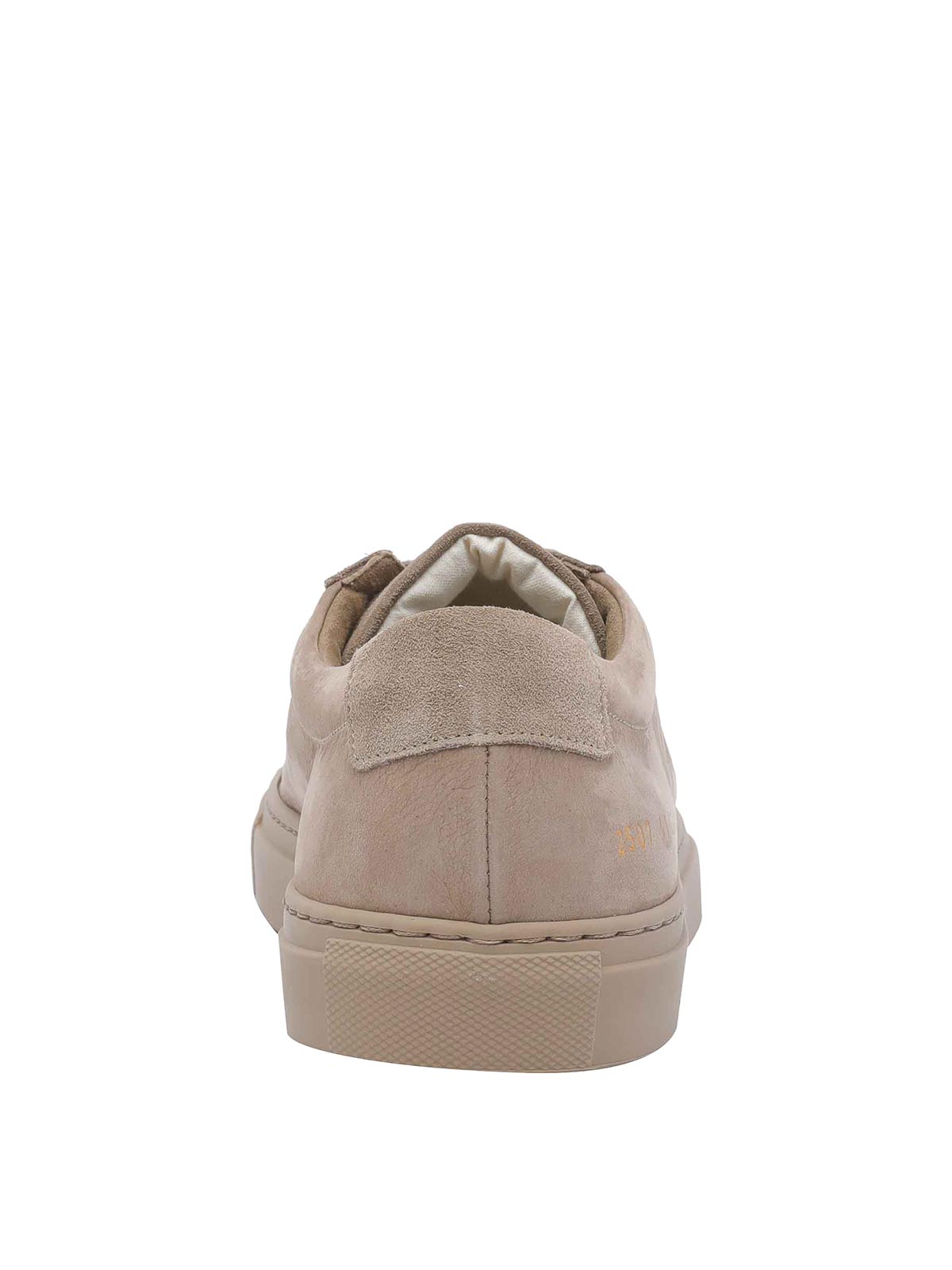 Common prejects beige achilles in nubuk sneakers, round toe, suede upper, laces closure