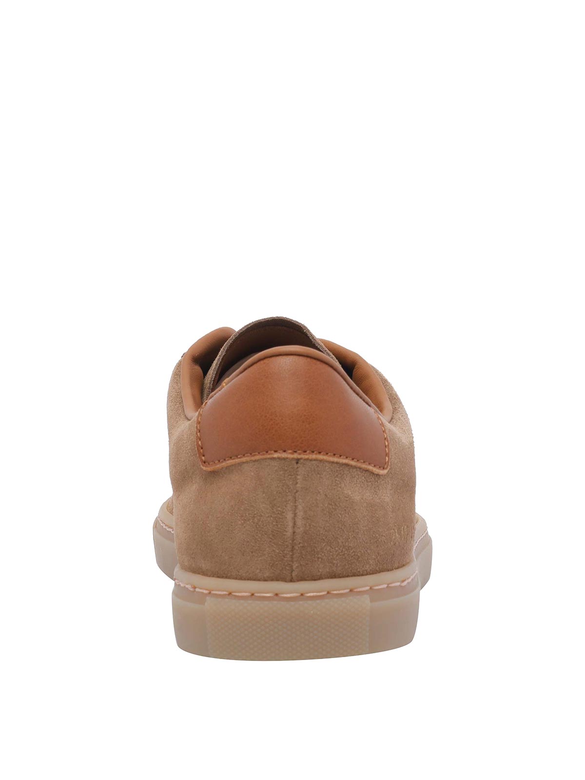 Common projects beige field sneakers, round toe, suede upper, laces closure