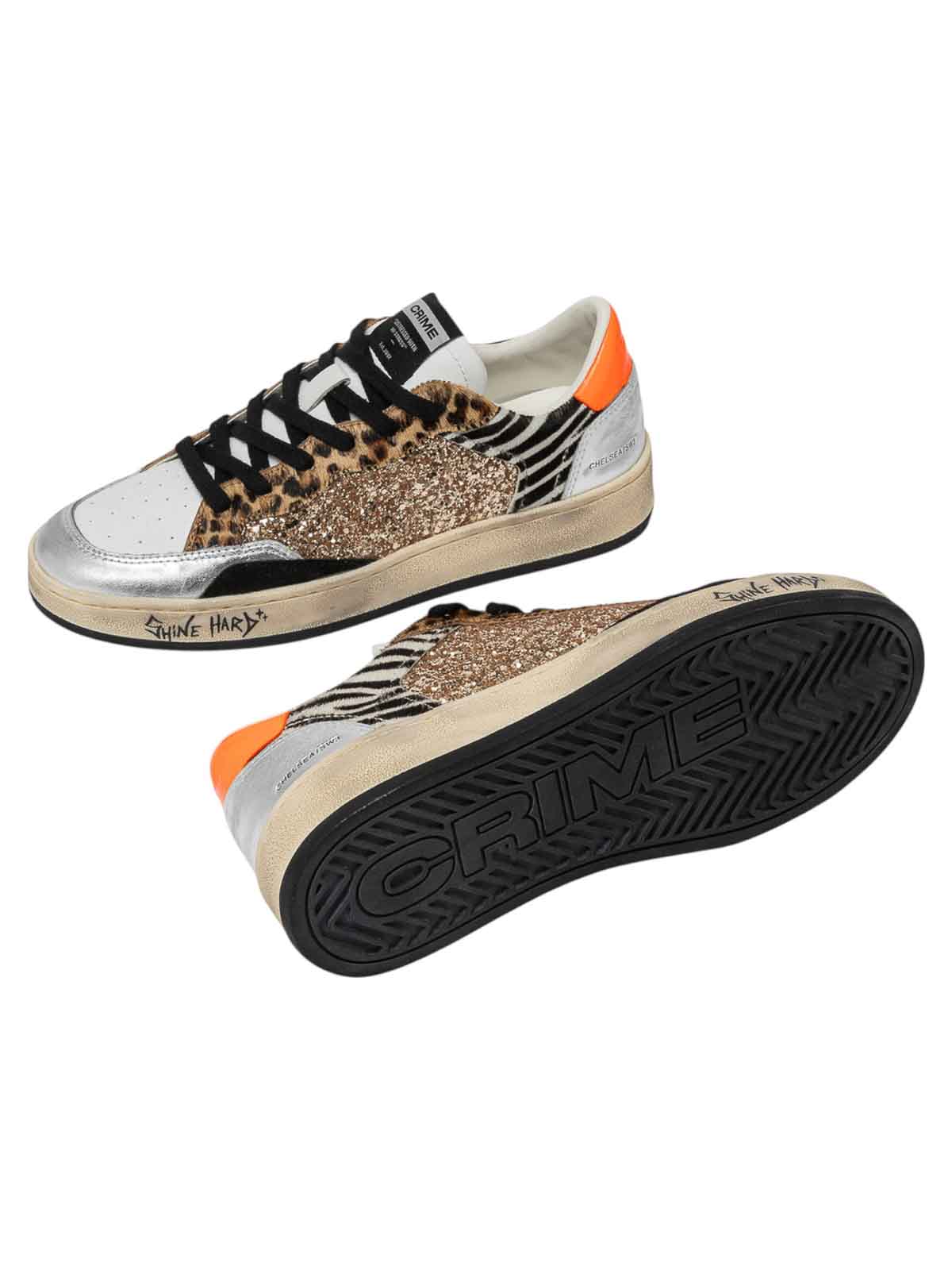 Crime London Sneaker Chelsea AA Multicolor / Animalier Sneaker that combines contemporary style and artisan quality italy na with multicolor upper enriched by black and orange heel fluo the beige with high black background ensures lightness and comfort while it guarantees it breathability a distinctive and versatile model completed by the writing Shine Hard on the back main features with black and black Beige Fluo orange heel with black background height and breathable regular shoes Shoes Shine Hard on the back for an original touch