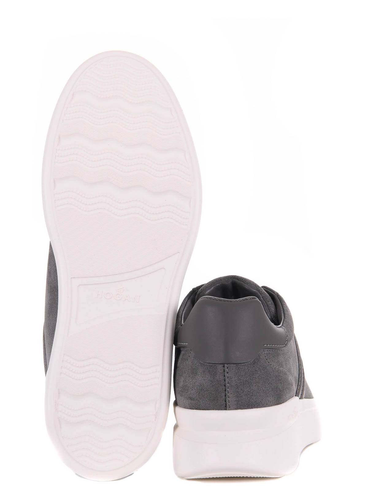 Hogan h580 sneakers in gray suede. round toe. hogan lettering embossed on the tongue. lace-up. leather hogan monogram on the side with contrasting trim. leather insert on the back. 35 mm rubber sole. 100% leather