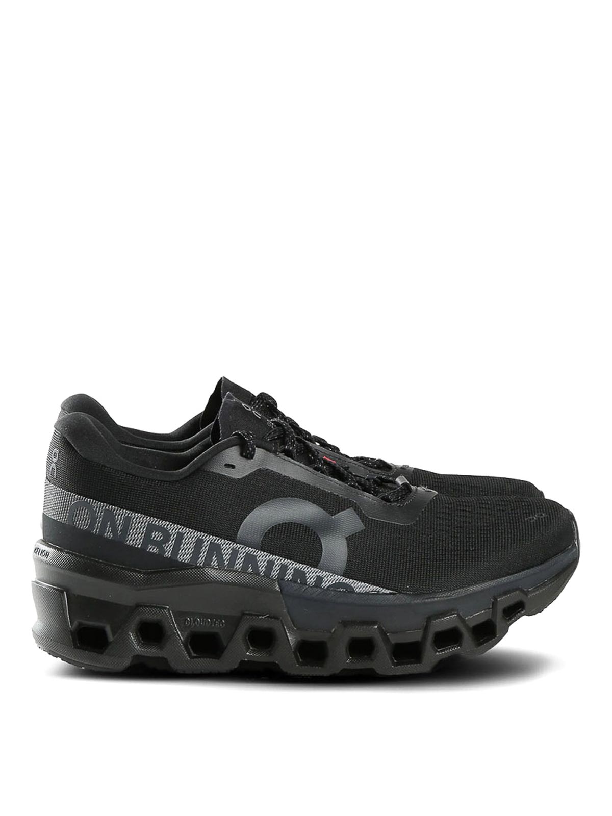 Black front lace-up fastening logo print to the side round toe chunky rubber sole