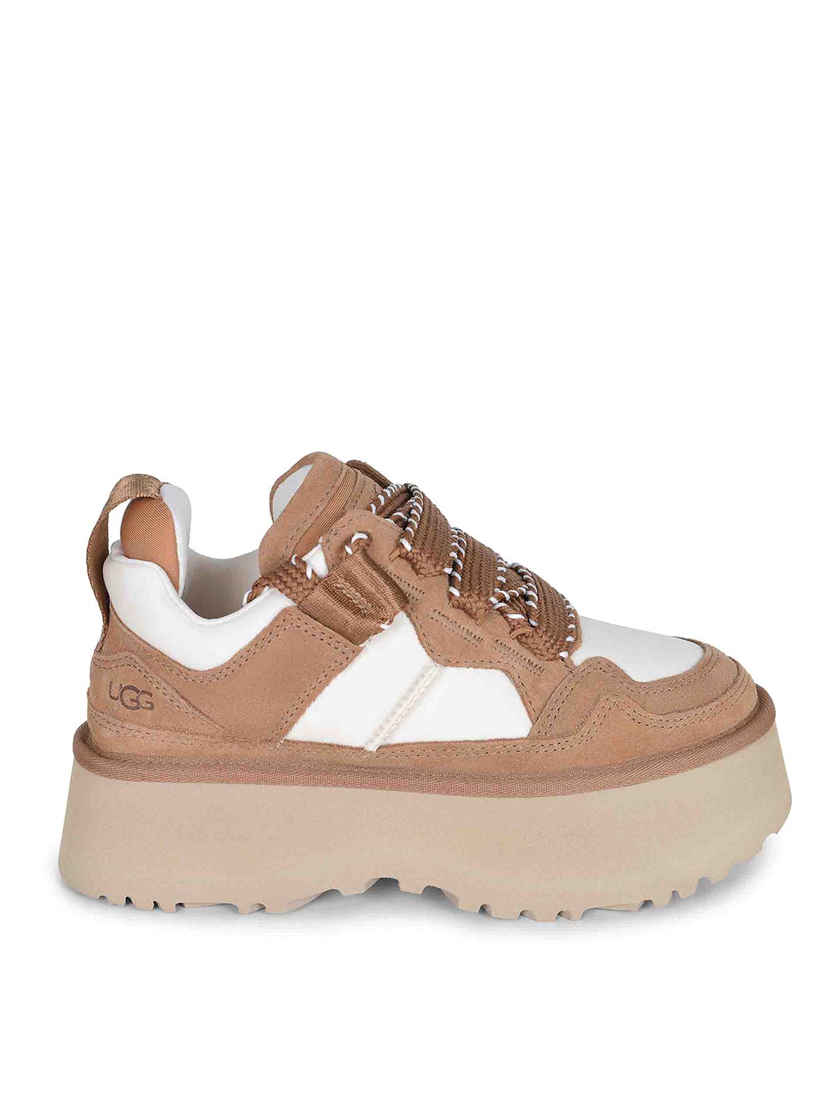 Ugg sneakers astromel made of a mix of fabric and camel suede. double stitching, durable fabric pull tab on the heel, ugg logo application, padded tongue. satin laces. fabric insole. internal sole in eva. eva sole made from sugar cane. platform height: 5.1 cm. 100% leather.