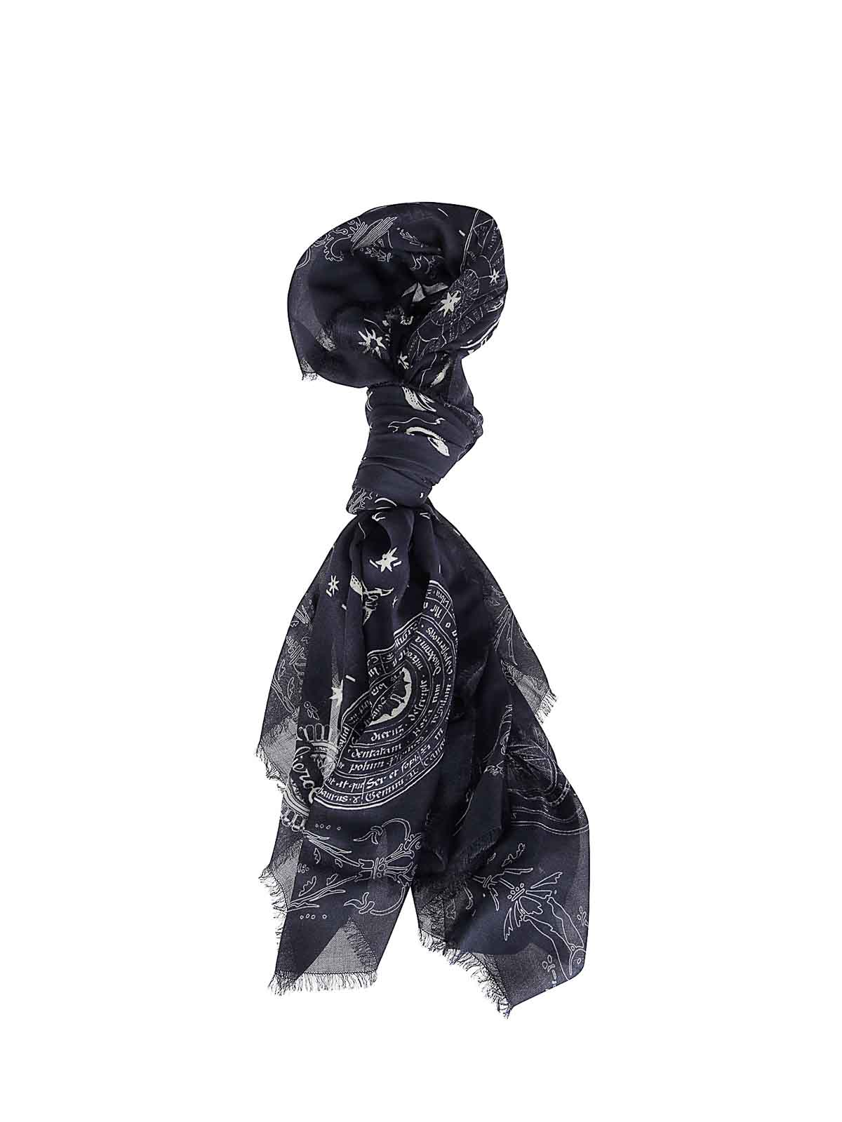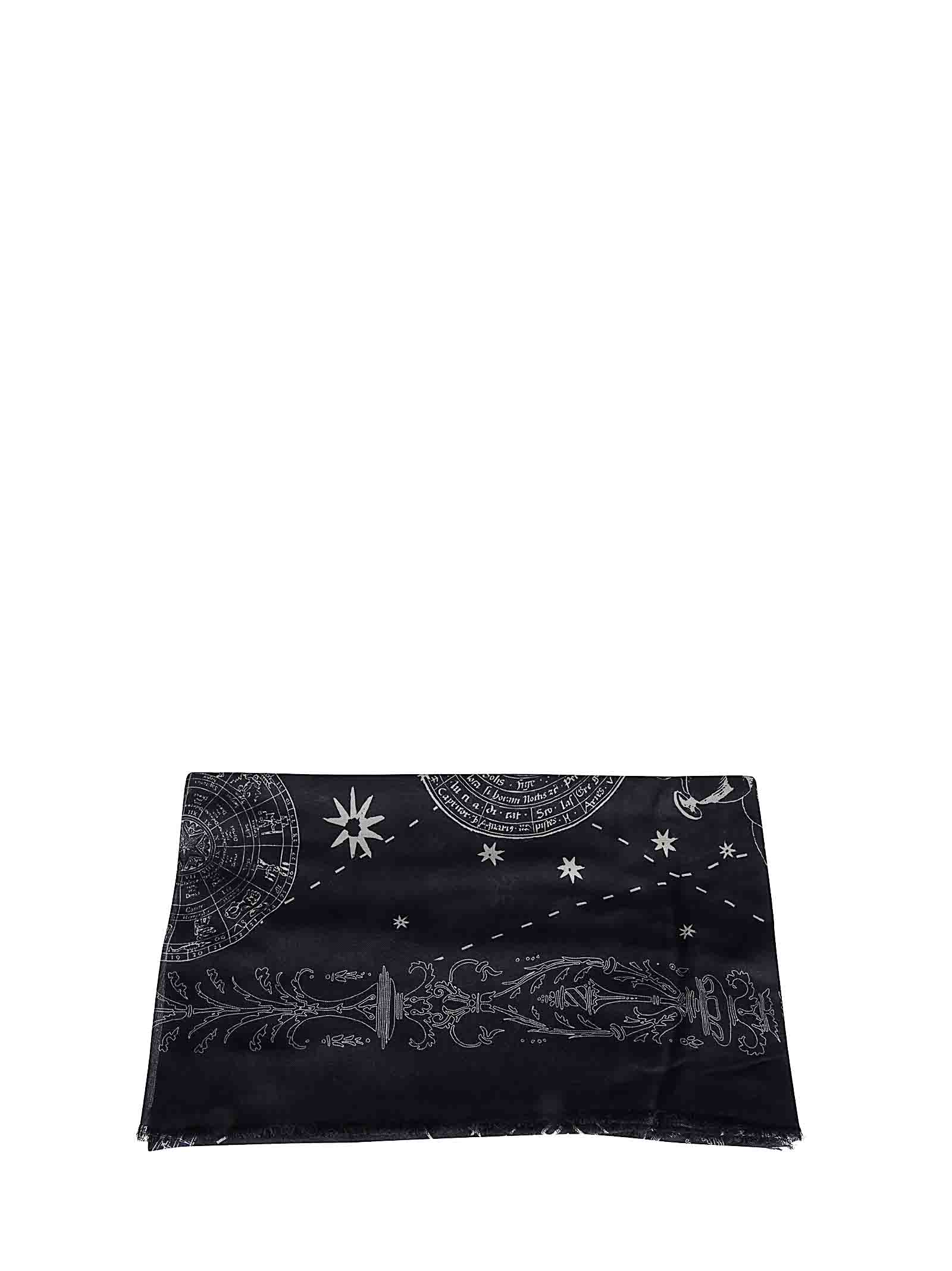 Soft modal and cashmere scarf with astrology themed print, lightweight fabric.