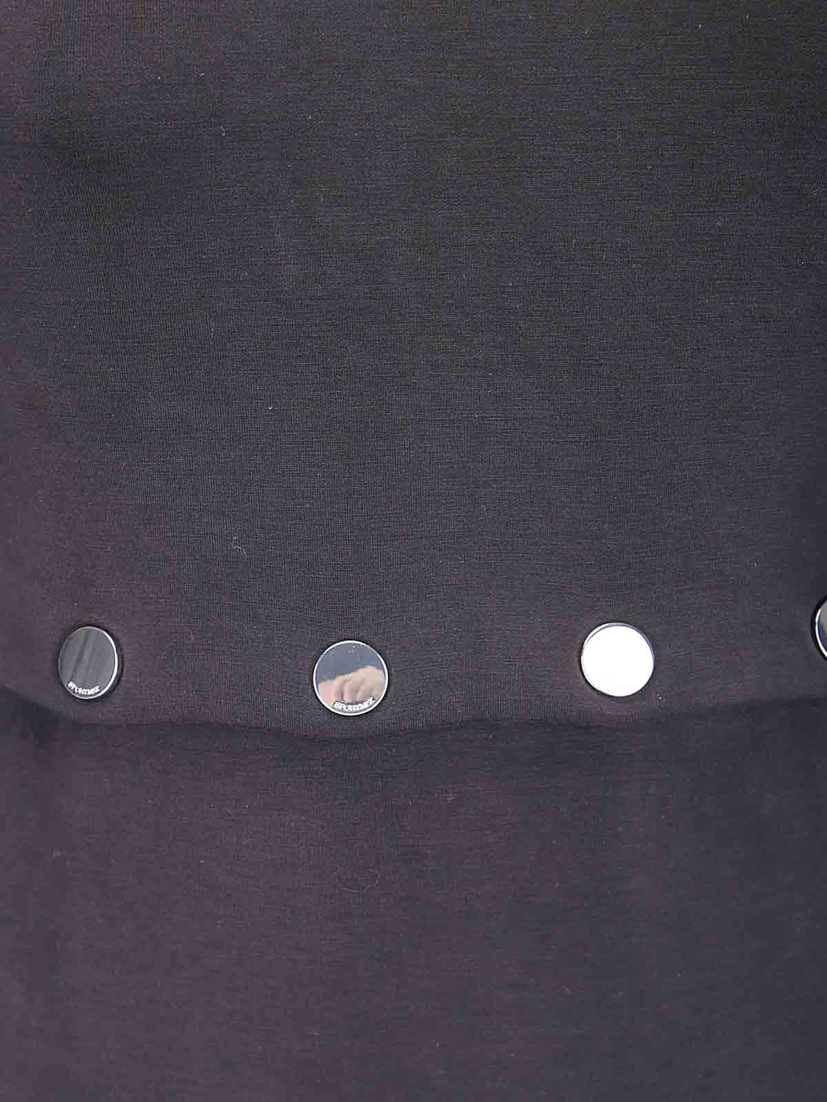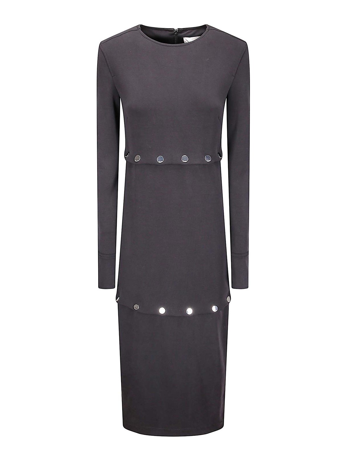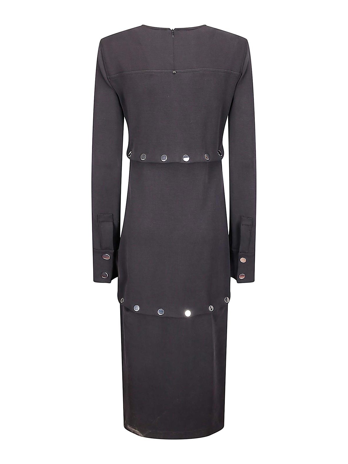 Long dress with contrasting applications, soft and elastic fabric, slim fit, rear zip closure.