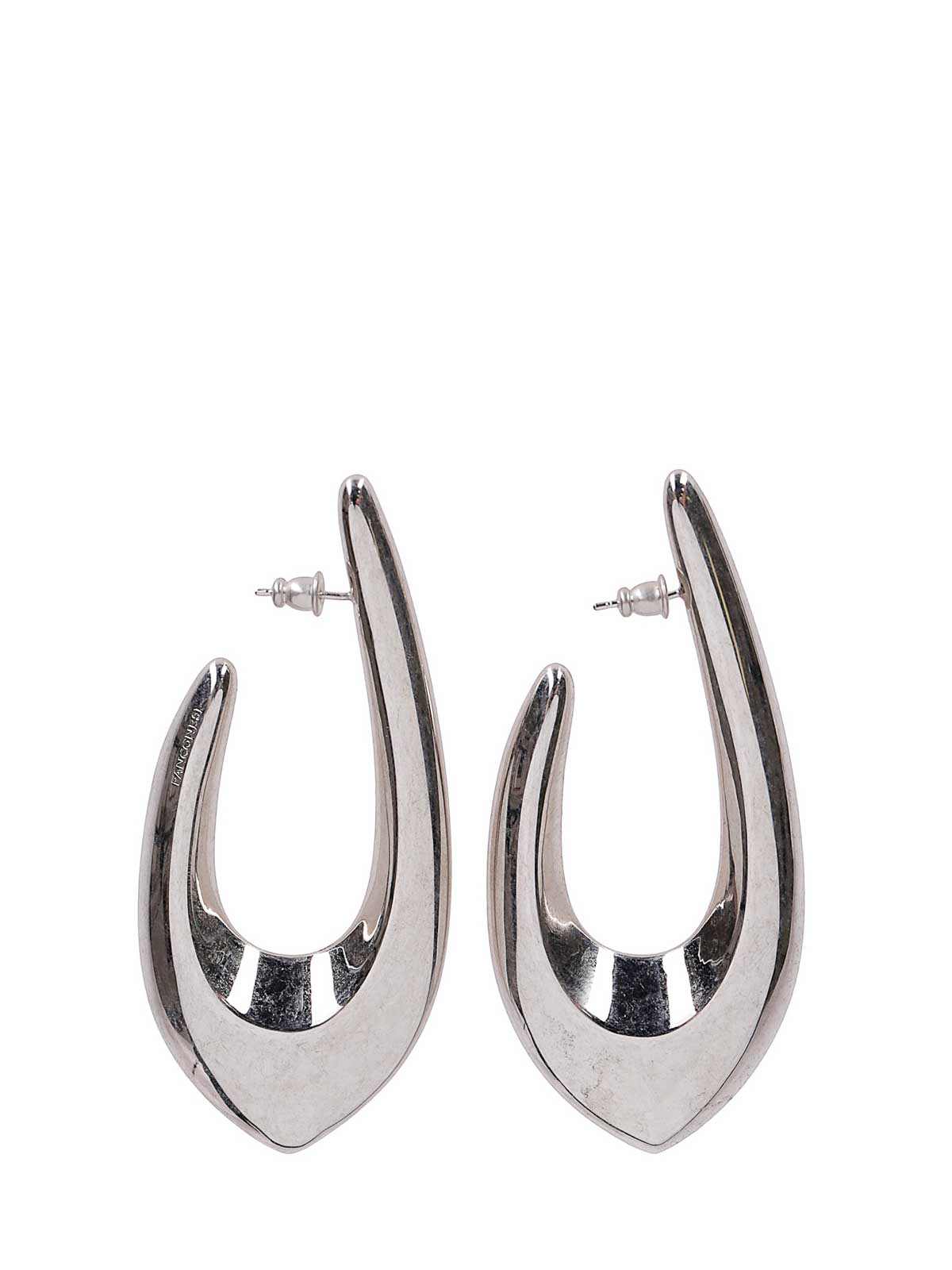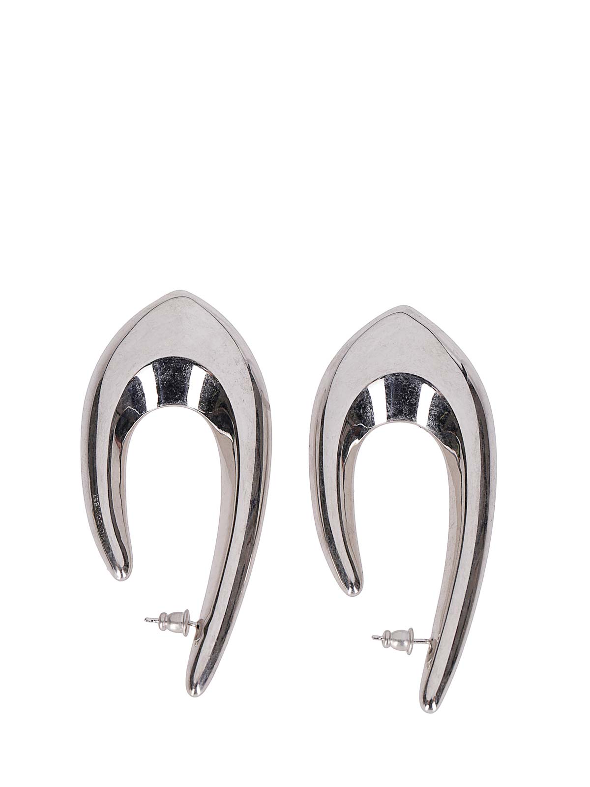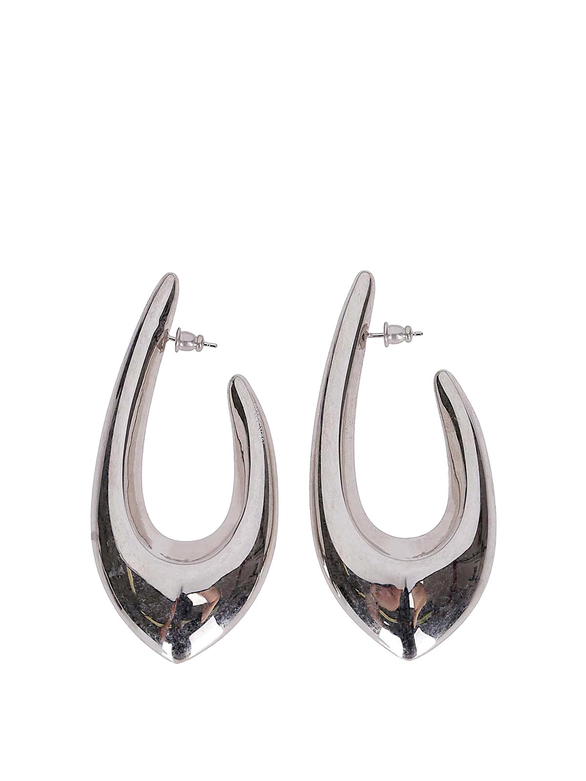Large silver brass earrings with a soft design and sharp edges, teardrop silhouette.
