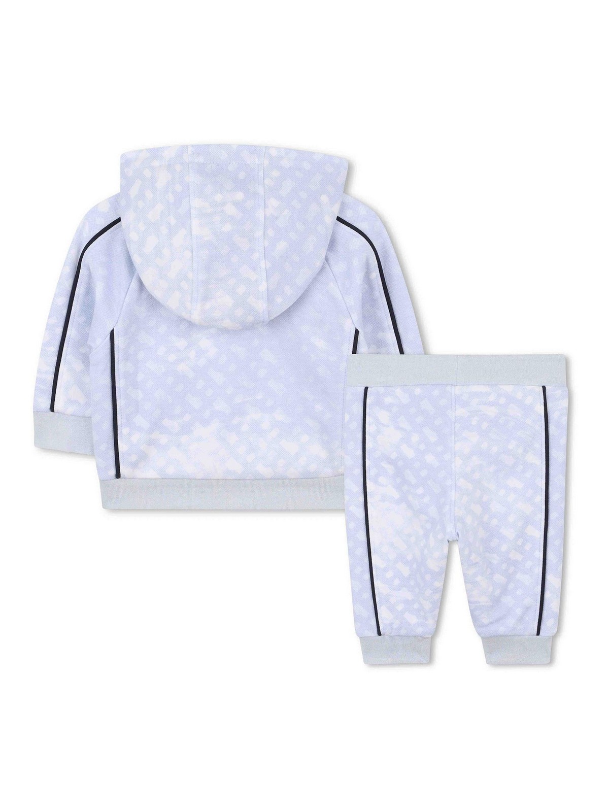 Light blue monogram design with zip side stripes elasticated waist ribbed hems