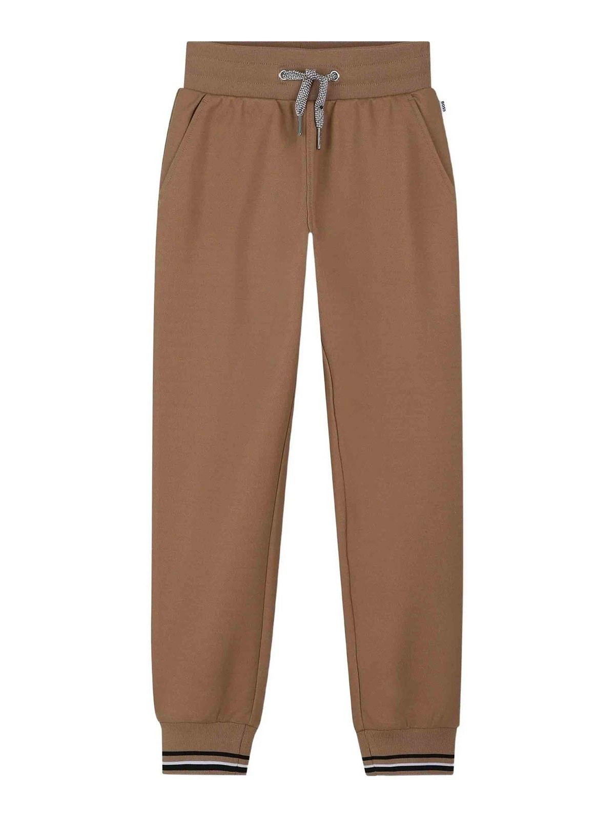 Brown with logo, adjustable hood with drawstring, side pockets, elasticated hems, elasticated waist