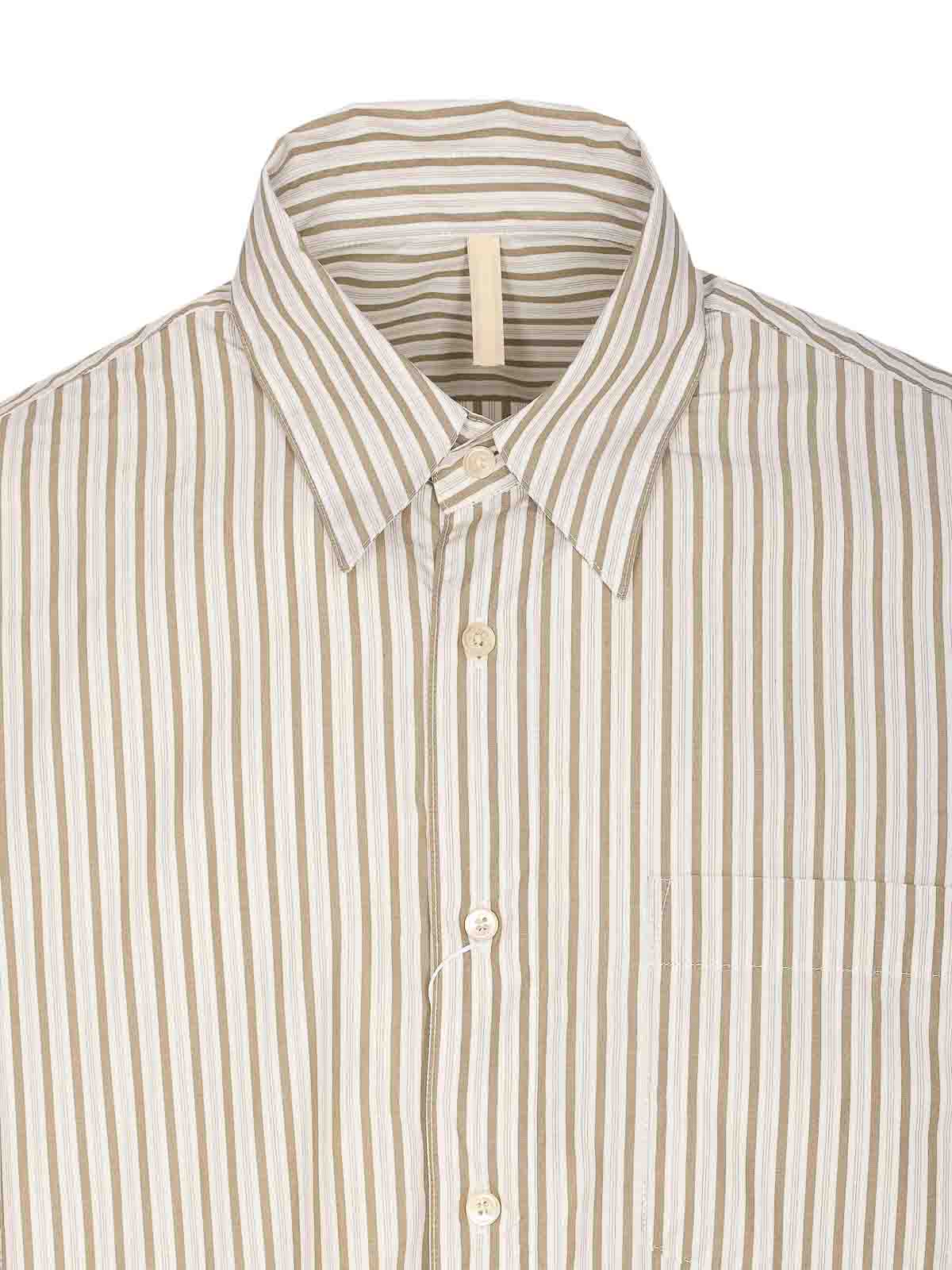 Sunflower khaki stable shirt, buttons closure on the front, collar, button on cuffs, striped, pocket on the front