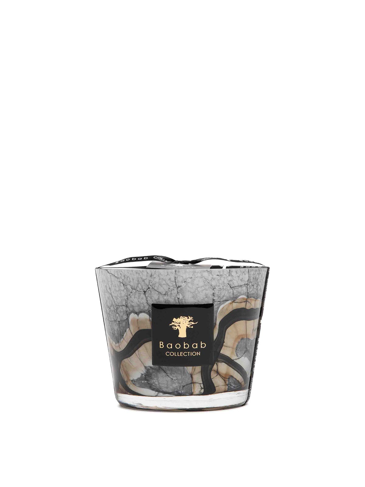 Baobab collection stones marble candle max10 from stones collection. its scent is a mysterious blend of leather and tuberose perfectly embodying the dual personality of marble stones, both feminine and masculine. the scented candle is set in a hand blown glass replicating grey marble with black strokes edged with beige. the elegance of the glass reveals the flame, giving an effect of a luminous stone. we don`t accept returns on this item
