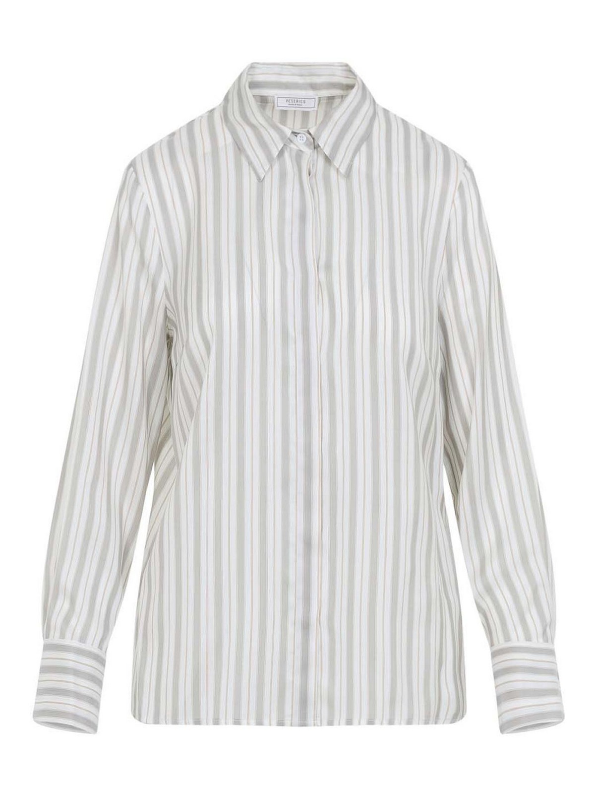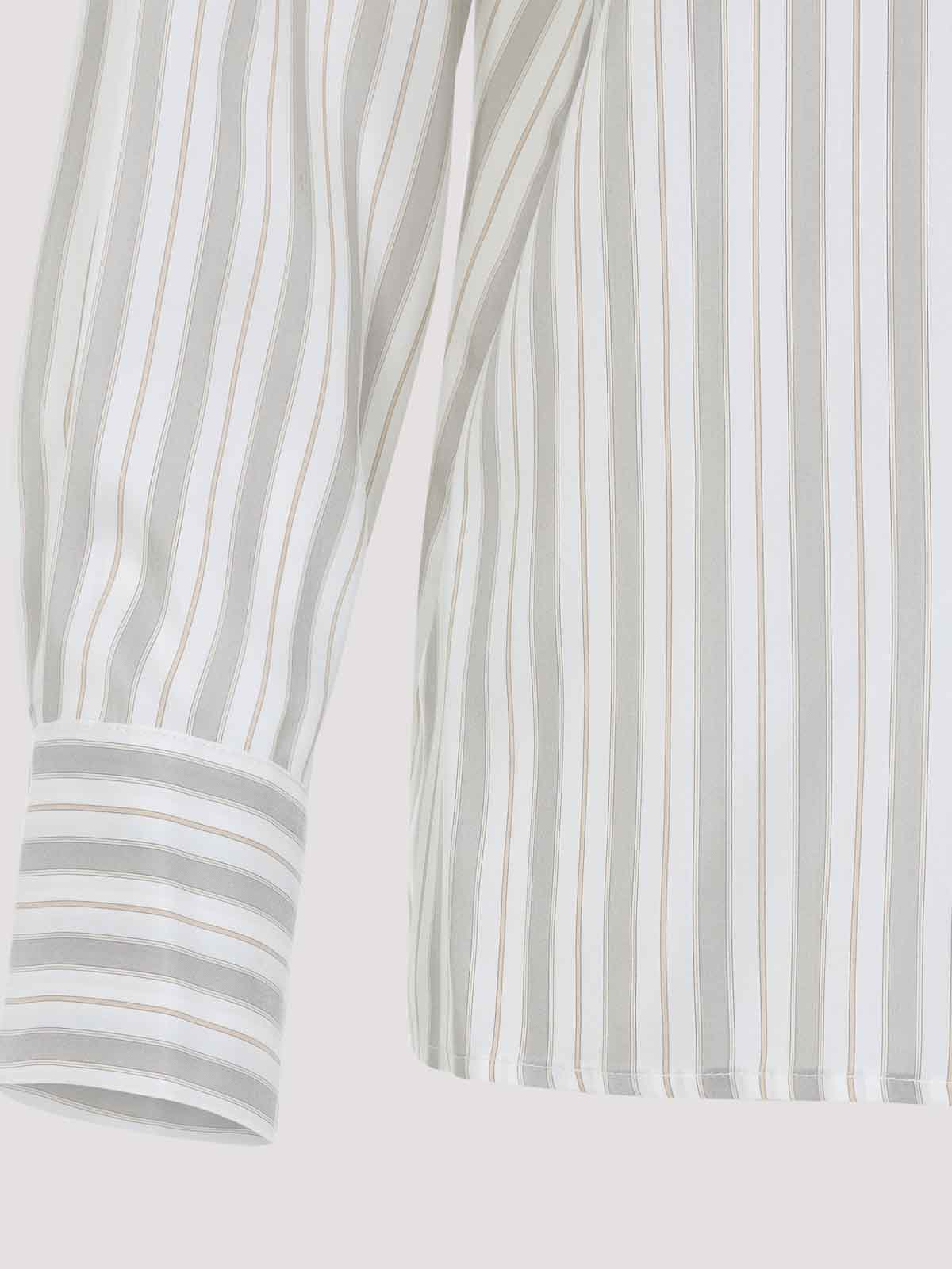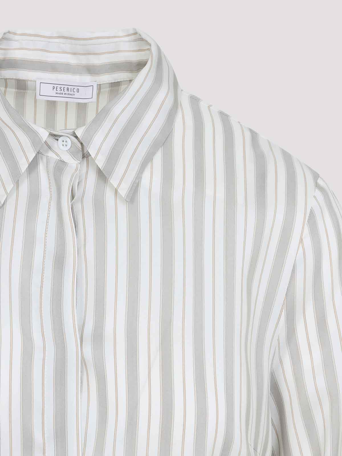 Peserico opal white striped shirt pure shirt pointed collar buttoned long sleeves buttoned cuffs straight hem opal white brown and grey stripes pattern all, over