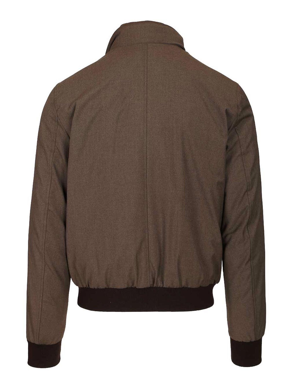 Moorer bomber jacket with removable turkey, material double collar with technical trim double with zip and buttons side welt pockets with technical profile and zip bottom and cuffs with knitted edges trim with logoed tapes and convenient pockets for valuables