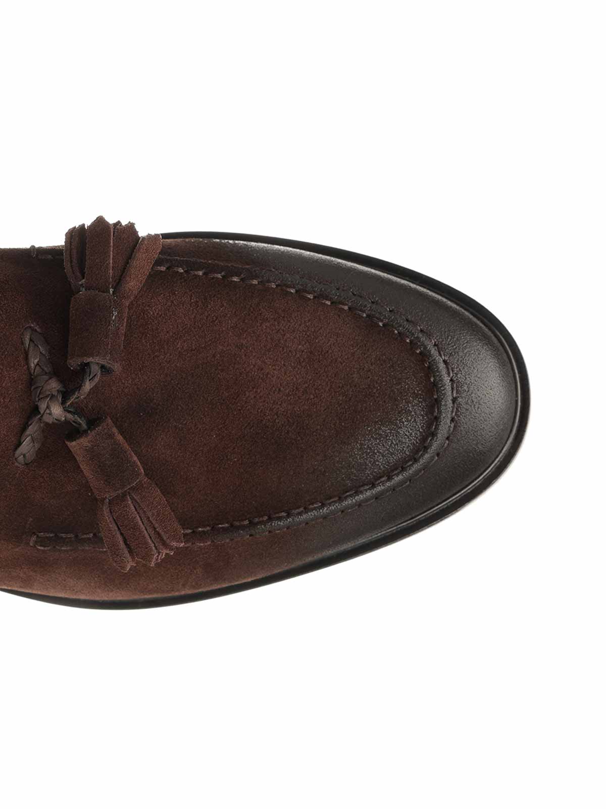 Ebony suede moccasin by corvari, with tassels and leather sole