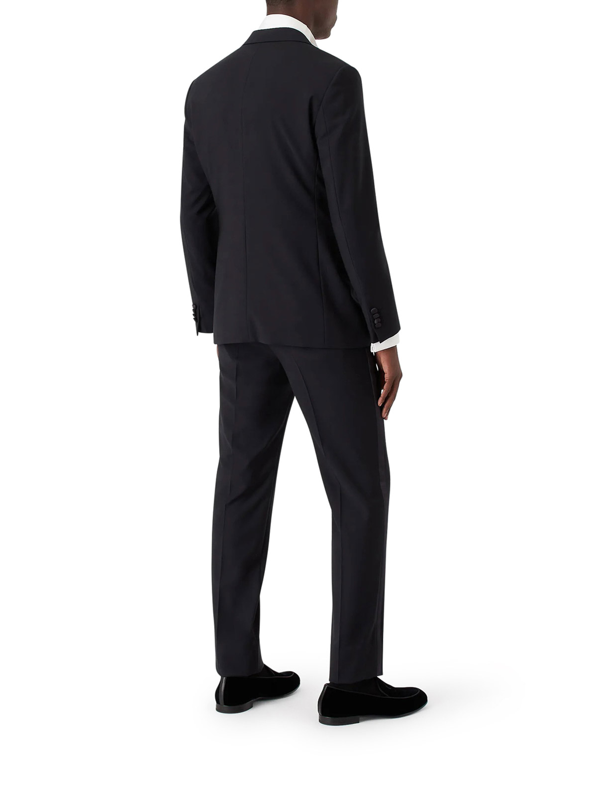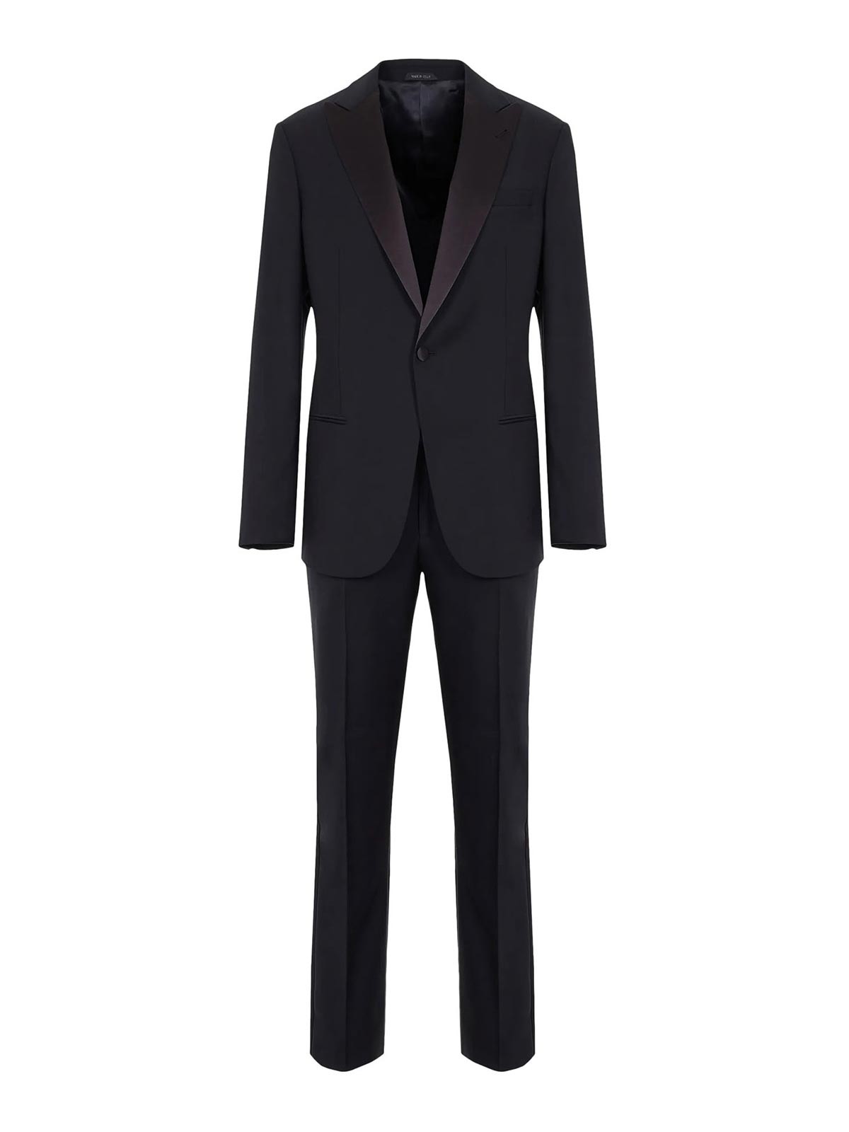 Tuxedo icon soho line, single, breasted one, button jacket, peak lapel collar, welt pockets, welt pocket, lined, jacket length, pants with button and zip, pants bottom width, - colore blue