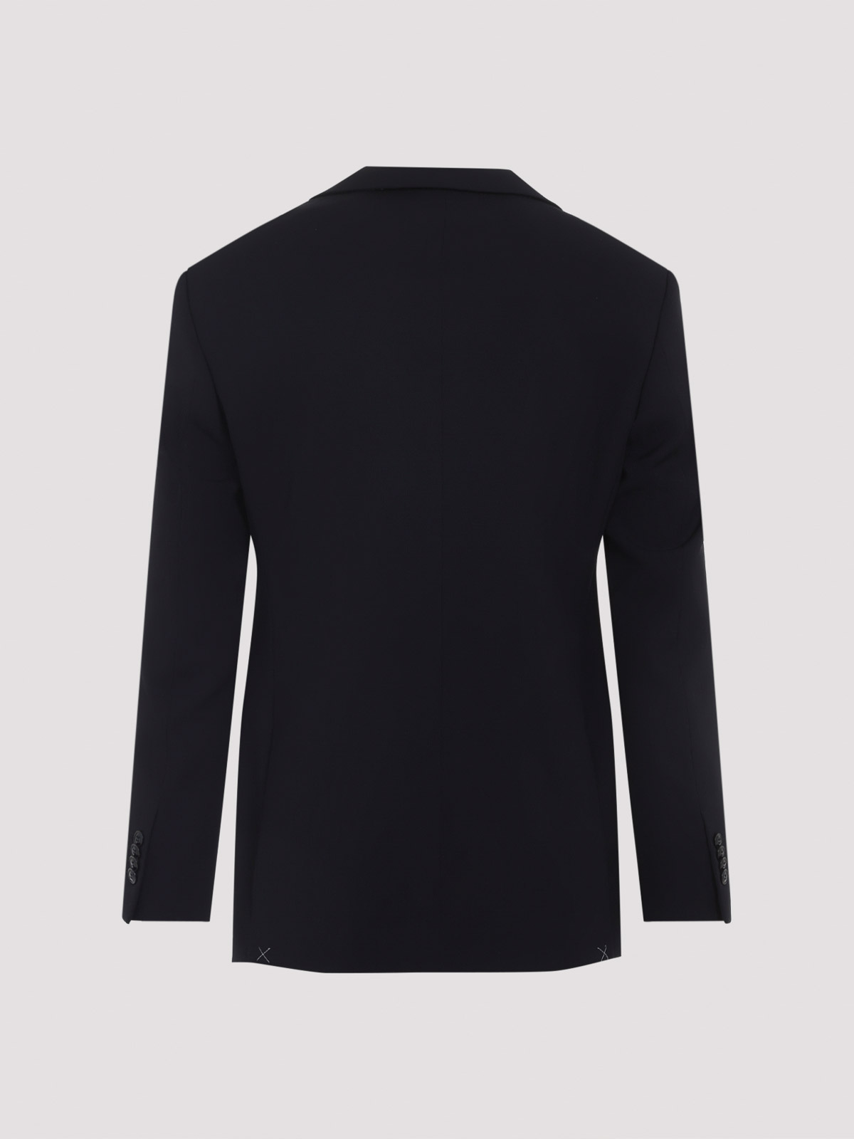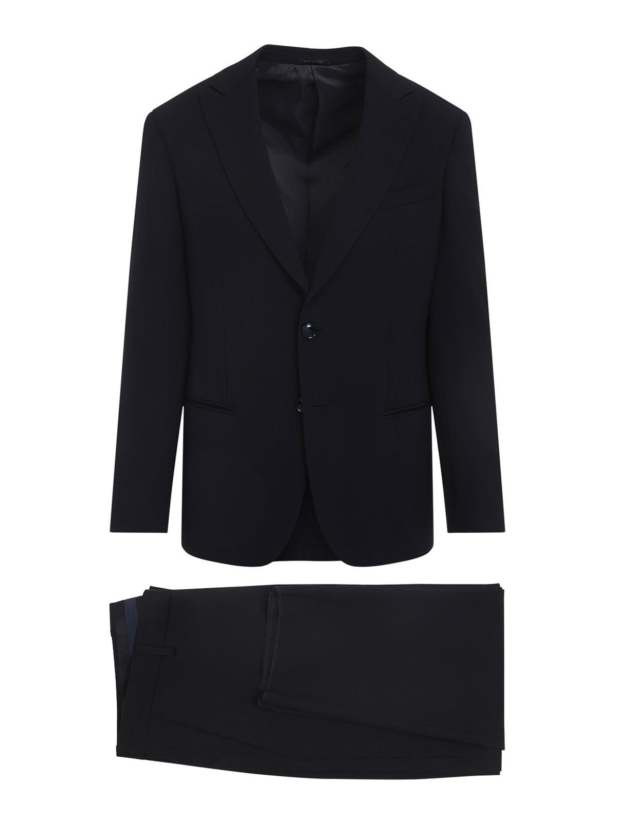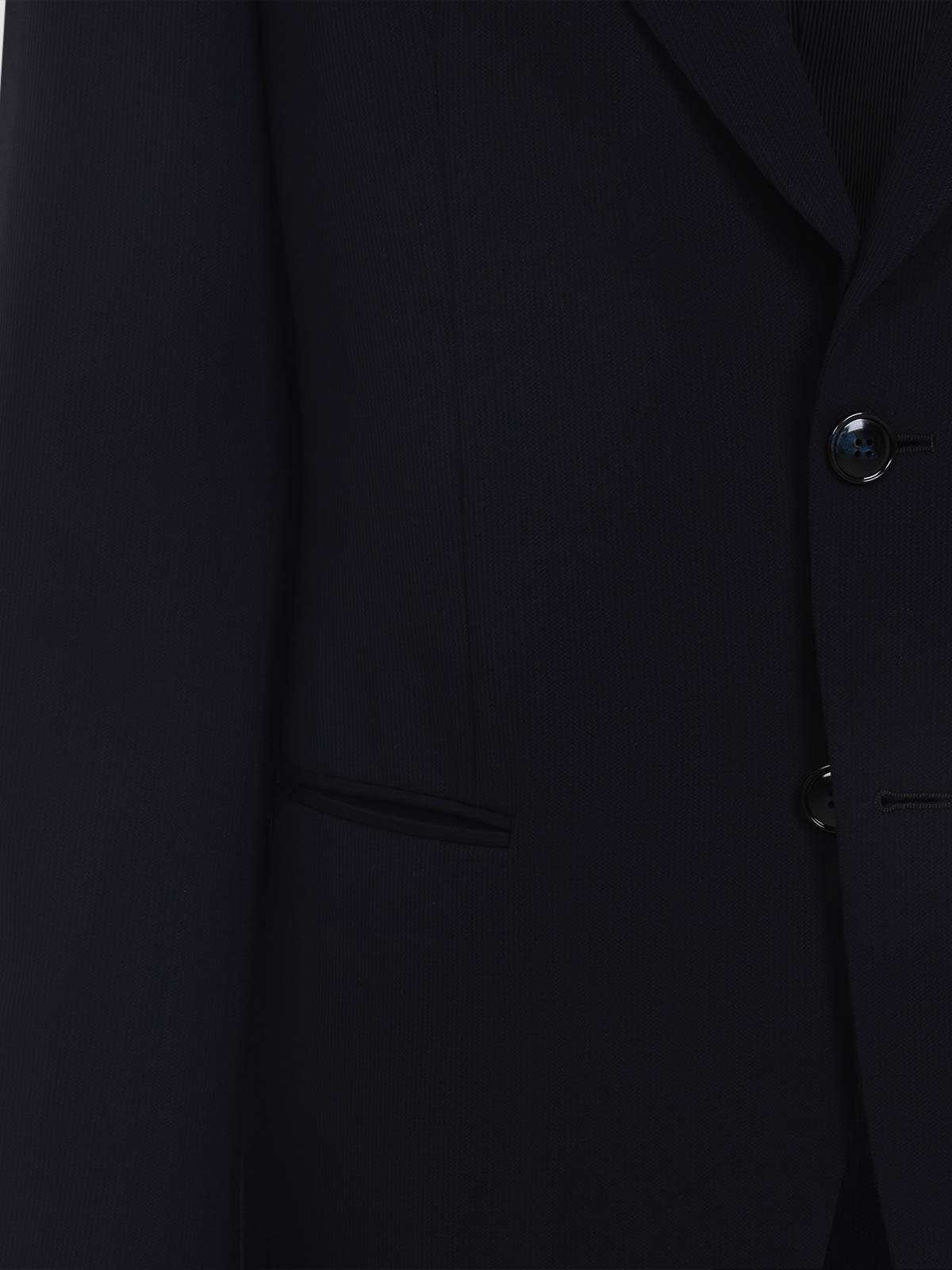 Giorgio armani dark navy blue suit pure dark blue suit notched collar buttoned side slit pockets long sleeves buttoned cuffs round hem fully concealing zipped buttoned belt loops side pockets back slit pockets straight hem