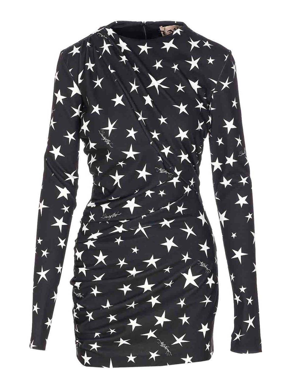 Aniye by black suky mini dress, zip closure on the back, crewneck, long sleeves, all over star print detail