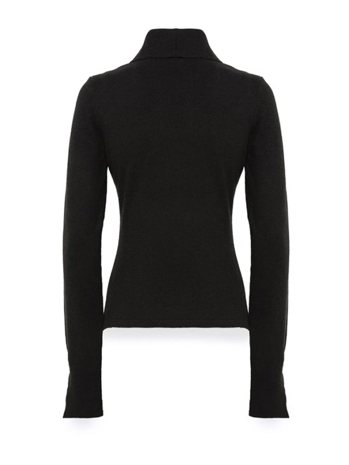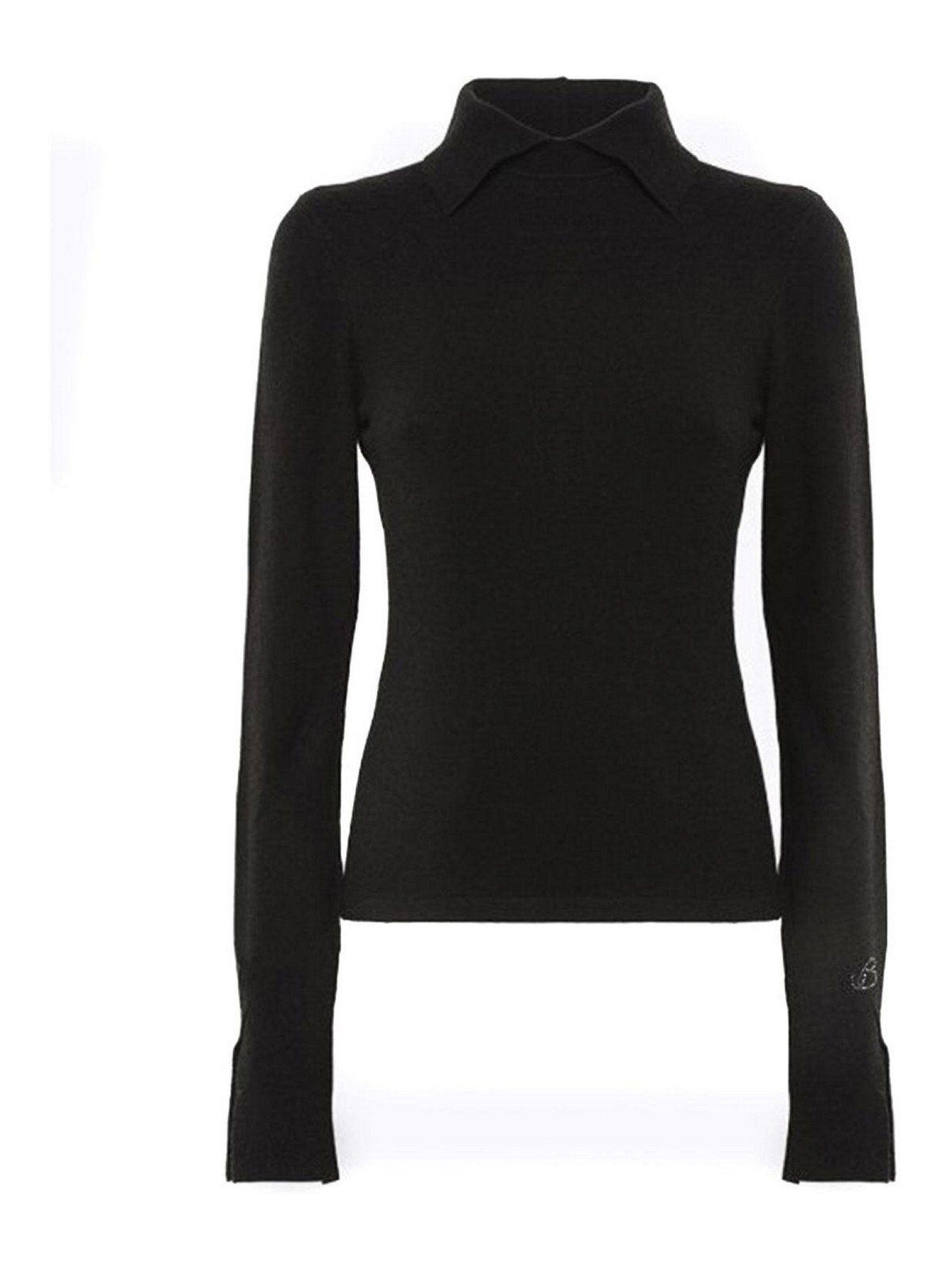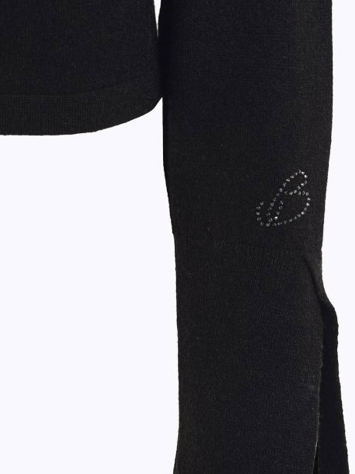 Blugirl jumper in stretch viscose blend with brushed finish, featuring a collar, long sleeves with slits, b logo on the sleeve with crystals, fitted silhouette.