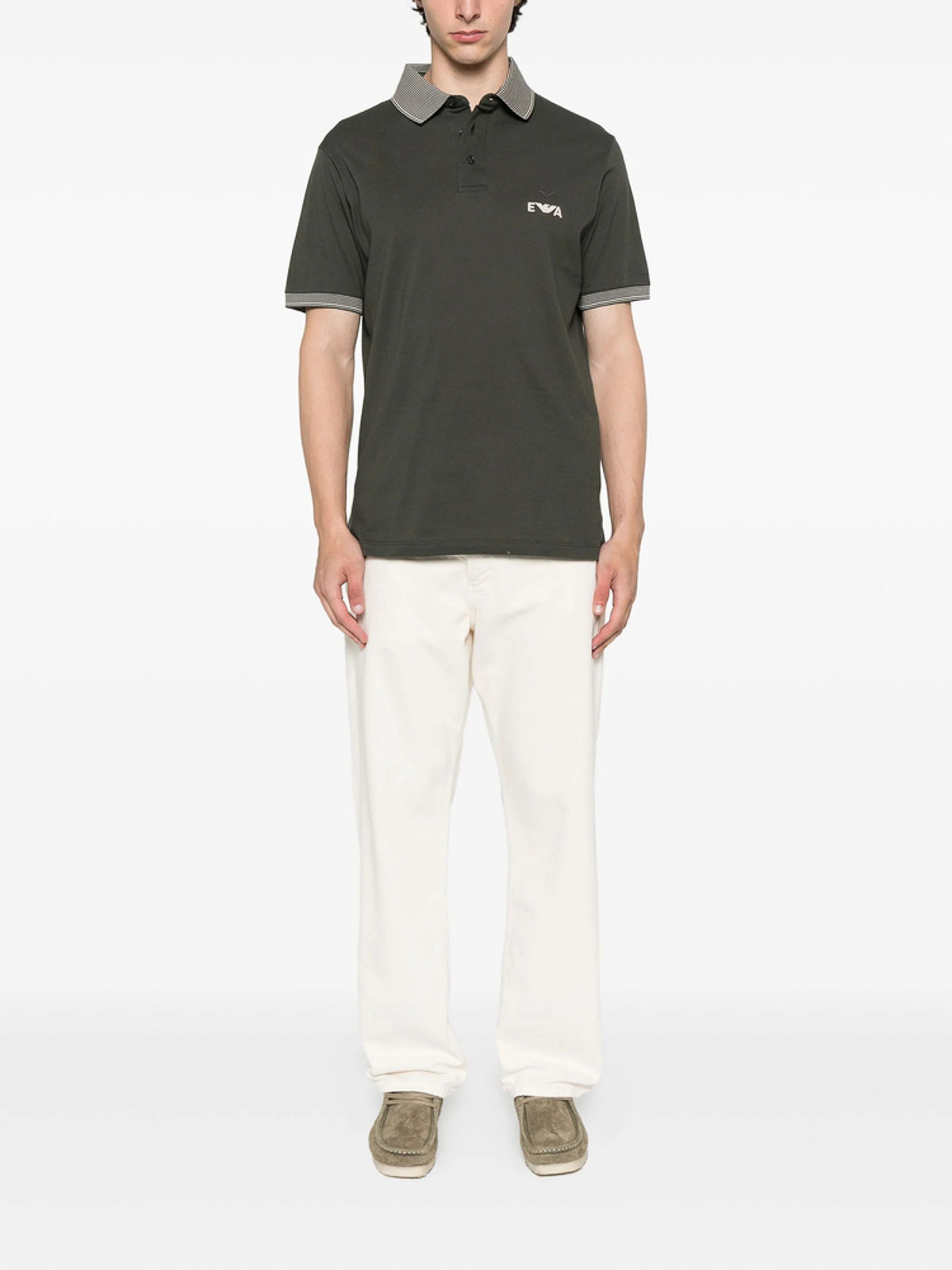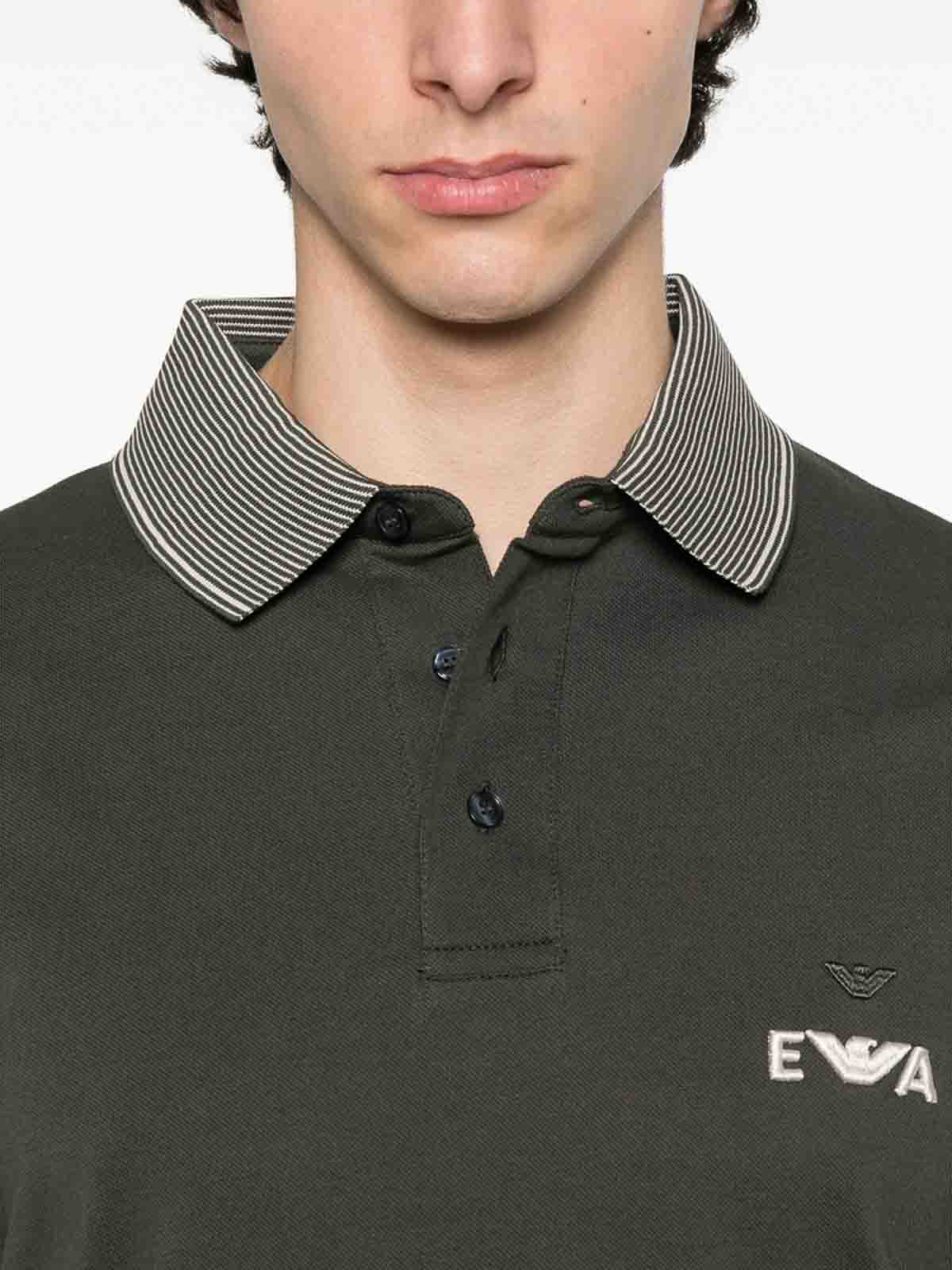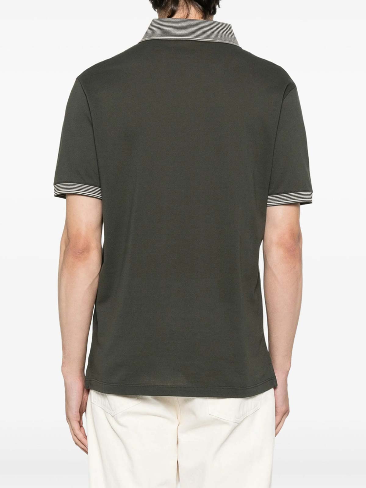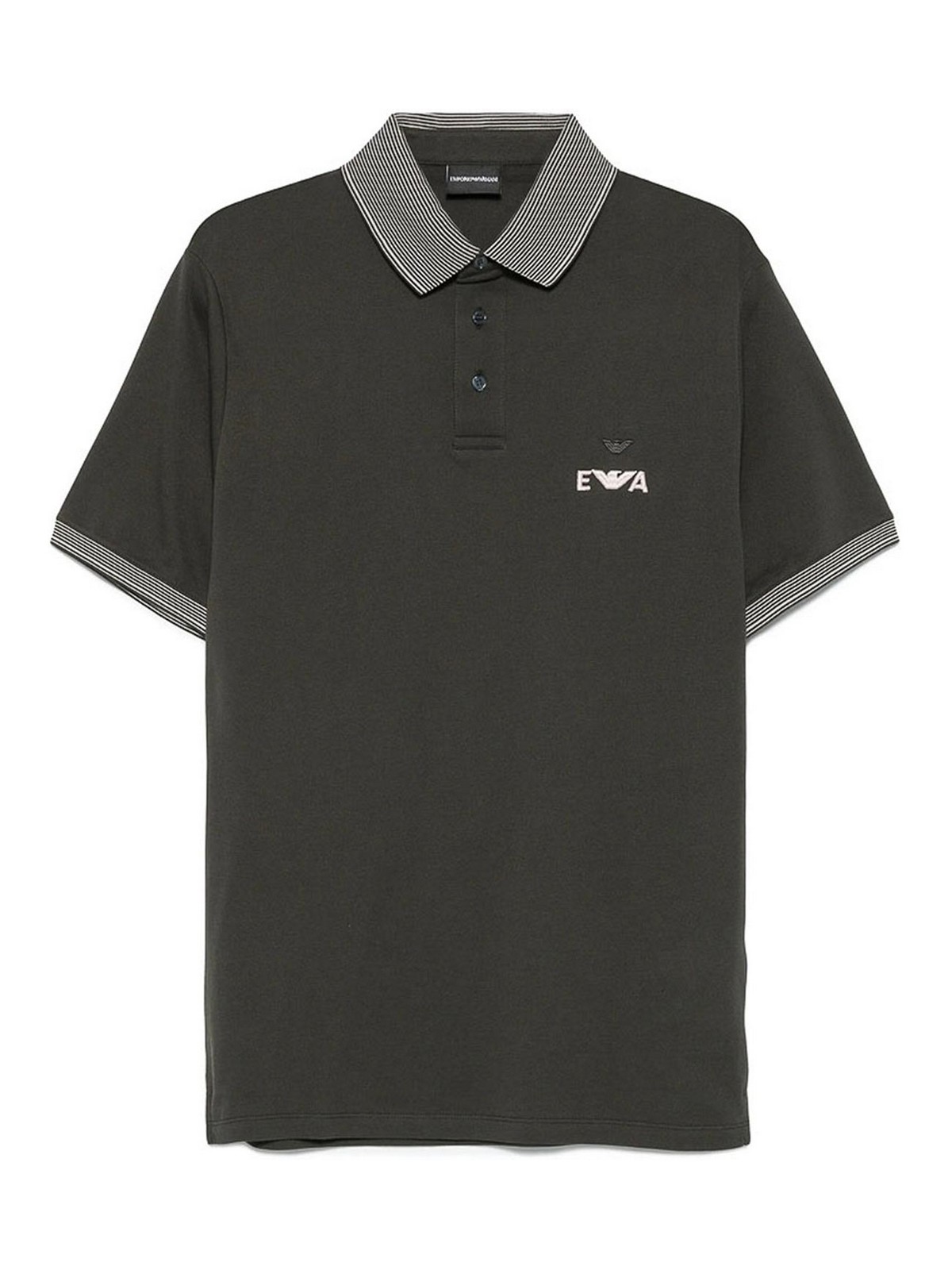 Dark green embroidered logo striped collar short sleeves button fastening cotton